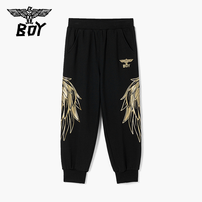 BOY童装 春秋儿童运动长裤侧边翅膀印花潮流微弹卫裤男女童中大童