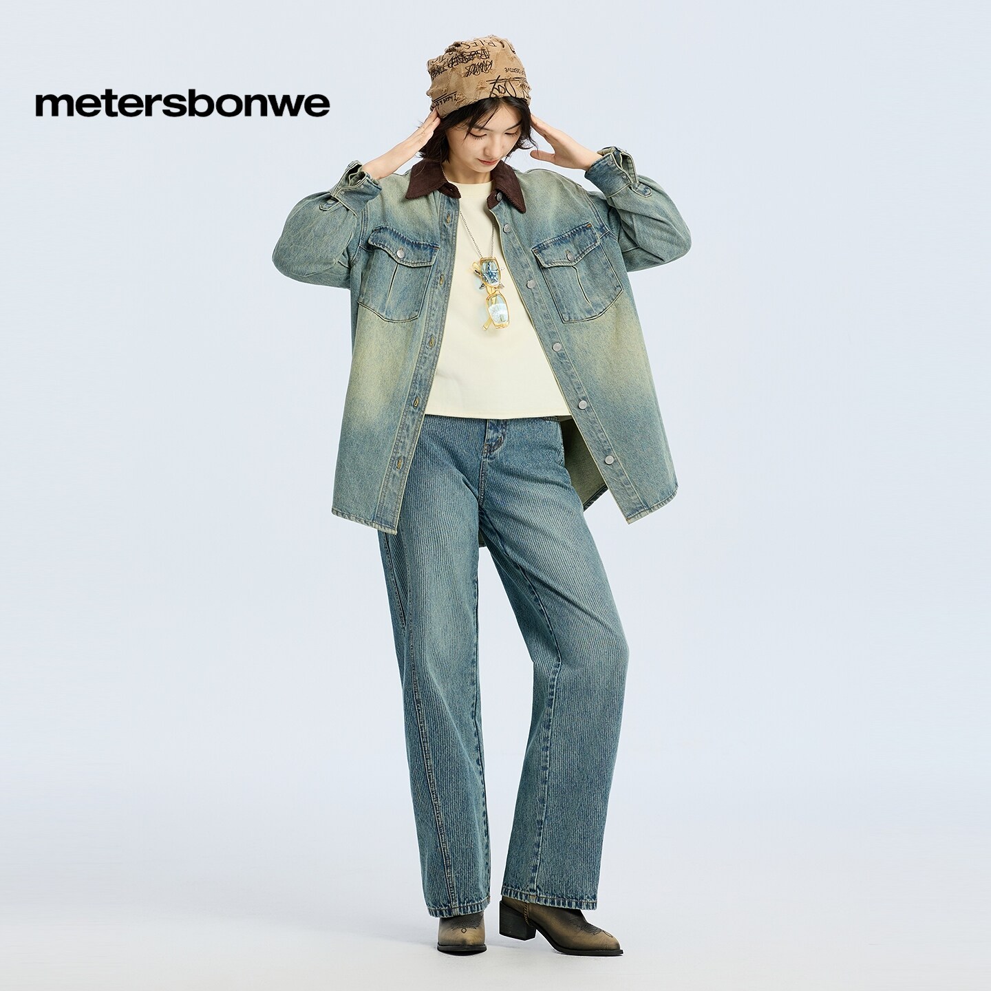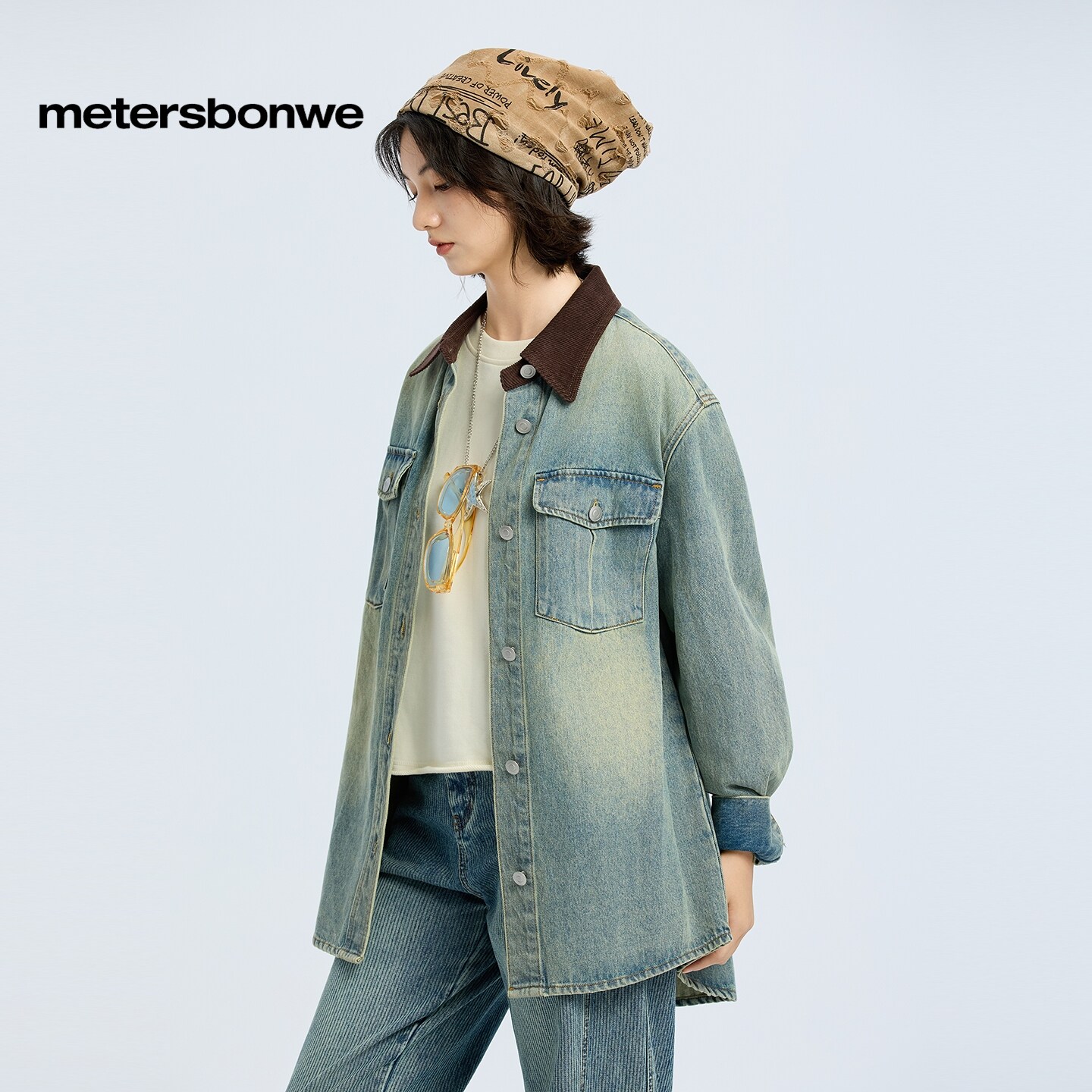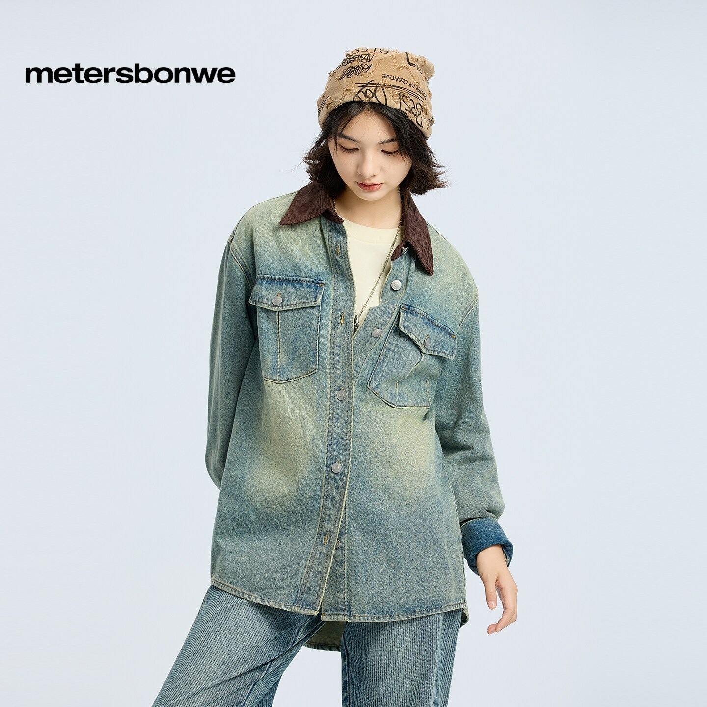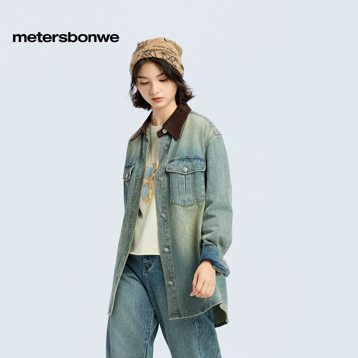 [商场同款]美特斯邦威女春新款潮流灯芯绒拼接翻领水洗外套