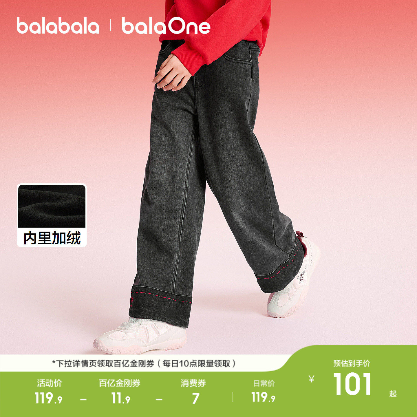 巴拉巴拉童装女童加绒裤子儿童2026新款春装装牛仔裤直筒拜年服潮