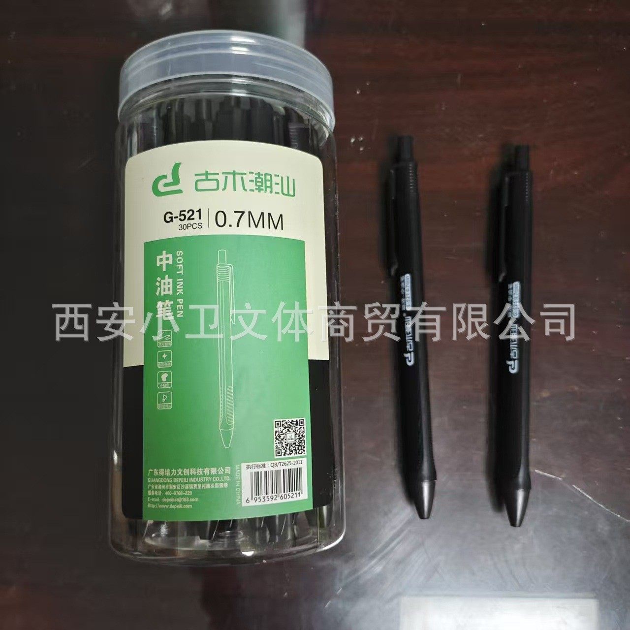 古木潮汕521圆珠笔按压式中油笔感顺滑油笔按动中性油笔0.7三角杆