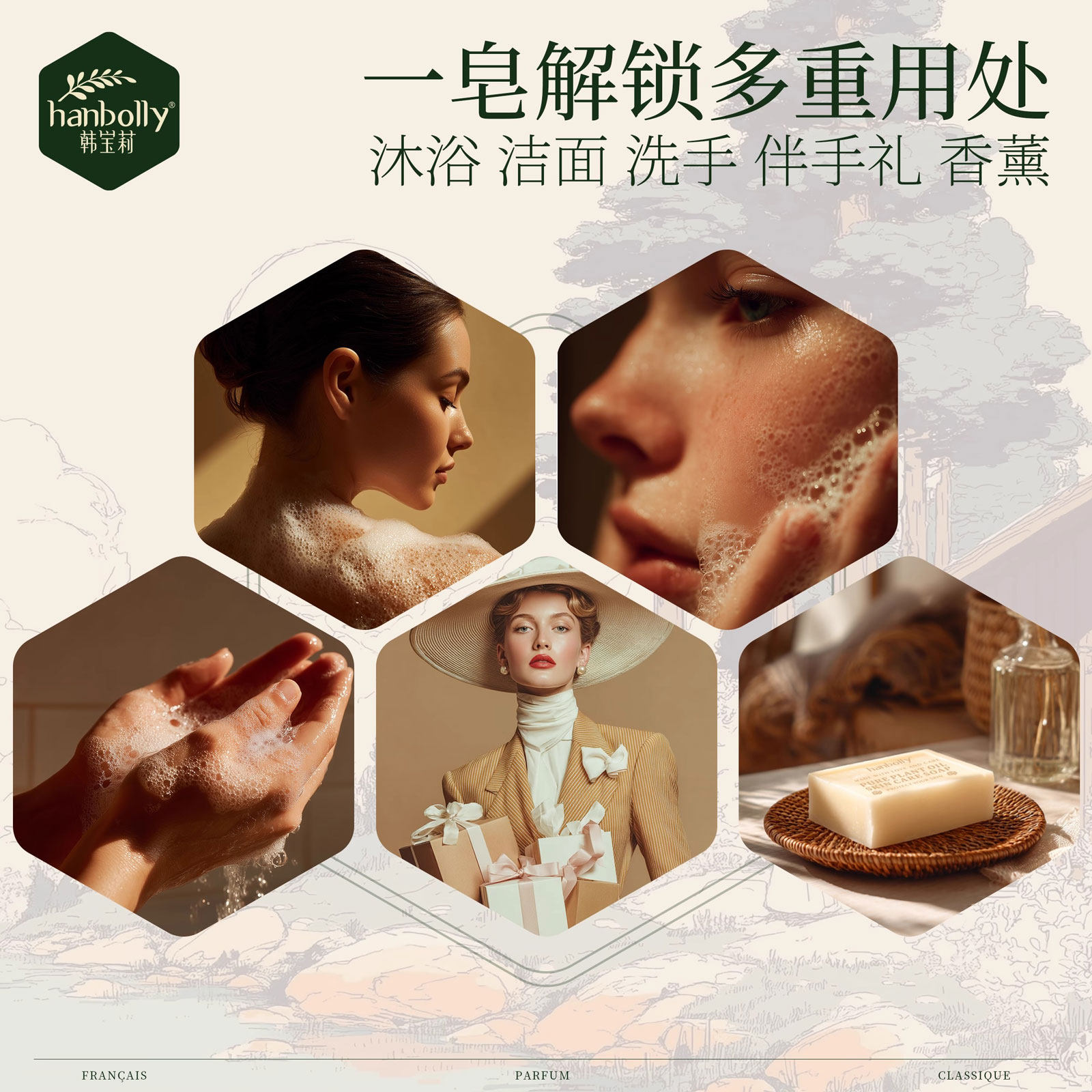 韩宝莉香氛香皂肥皂洗脸洗澡沐浴洗发皂留香精油手工正品官方品牌