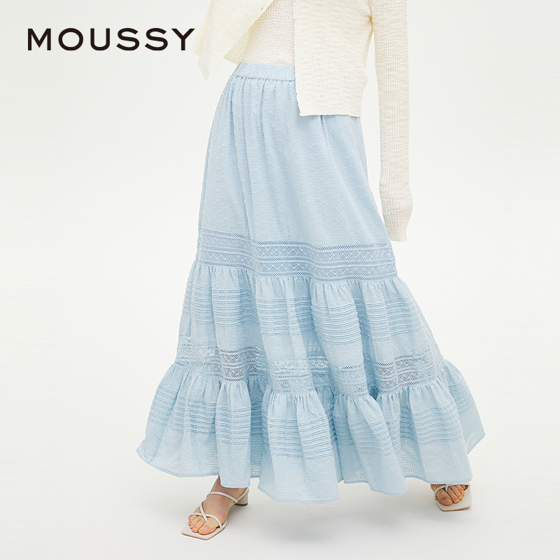 moussy 2025夏季新品波西米亚风蕾丝蛋糕裙半身裙女028ISA31-2051