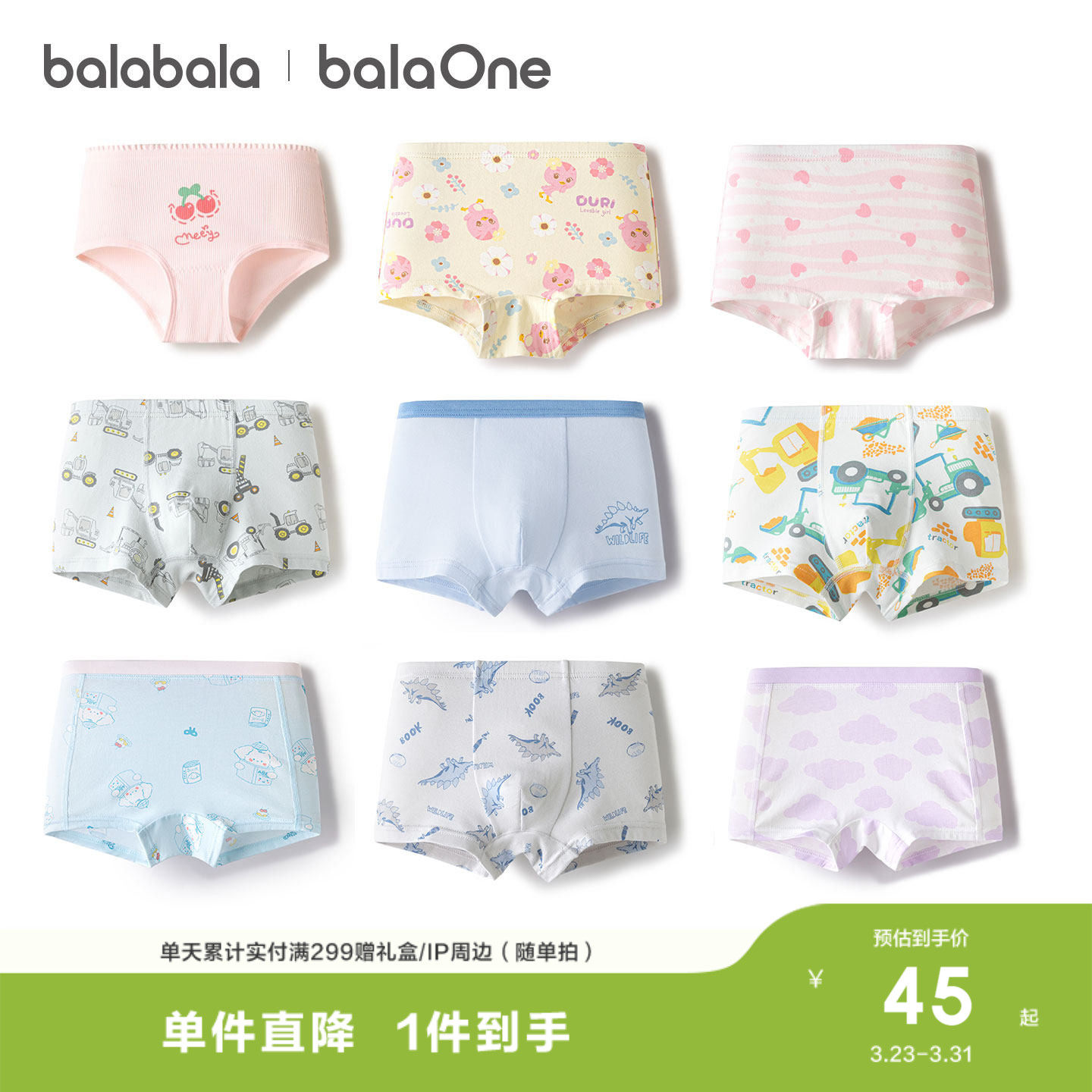 【balaOne】巴拉巴拉儿童内裤棉男童不夹pp抗菌裆四角短裤三条装