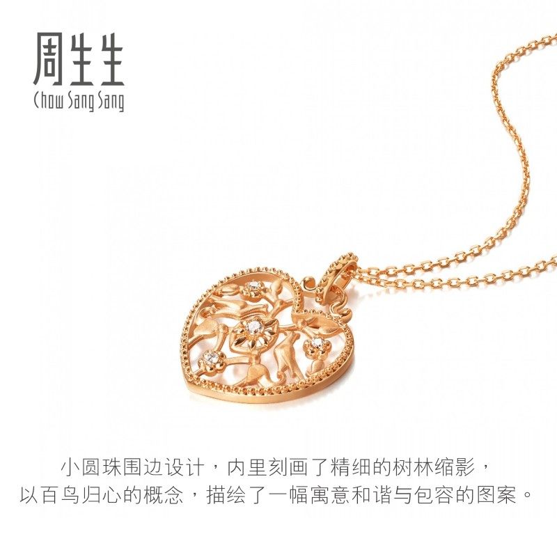 潮宏基悦己小幸运红18k项链玫瑰金锁骨女坠链套链礼物纪念礼物