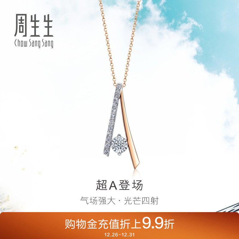 周生生18K白色及玫瑰色黄金炫幻钻石项链女生套链93085U