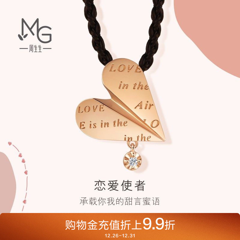 周生生爱情密语纸飞机k金吊坠爱心钻石18k金项链92433Z