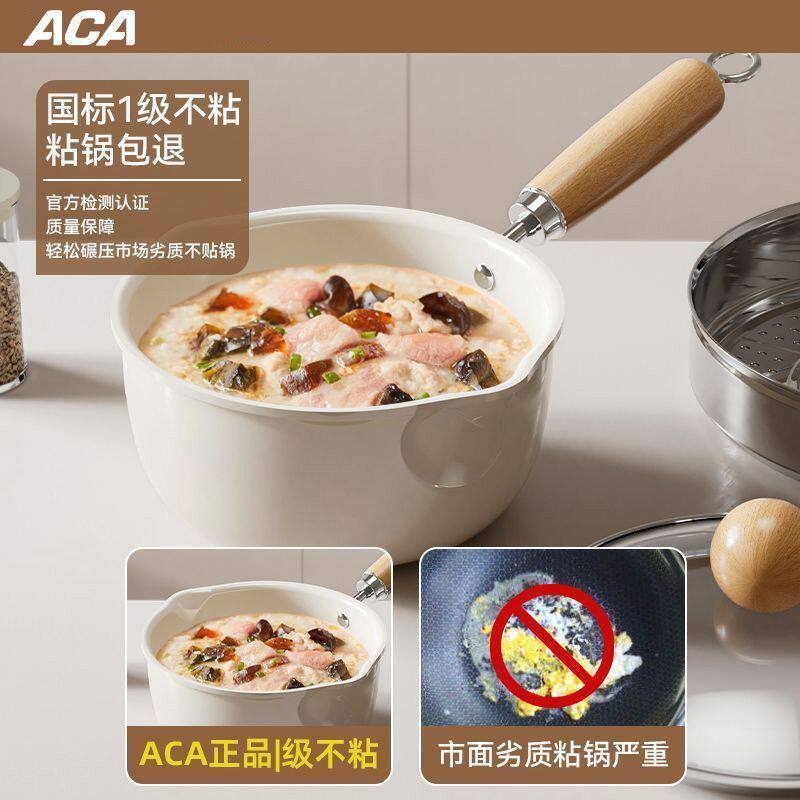 ACA陶瓷奶锅不粘锅宝宝辅食锅一人食煮面条热牛奶小锅宿舍泡面锅