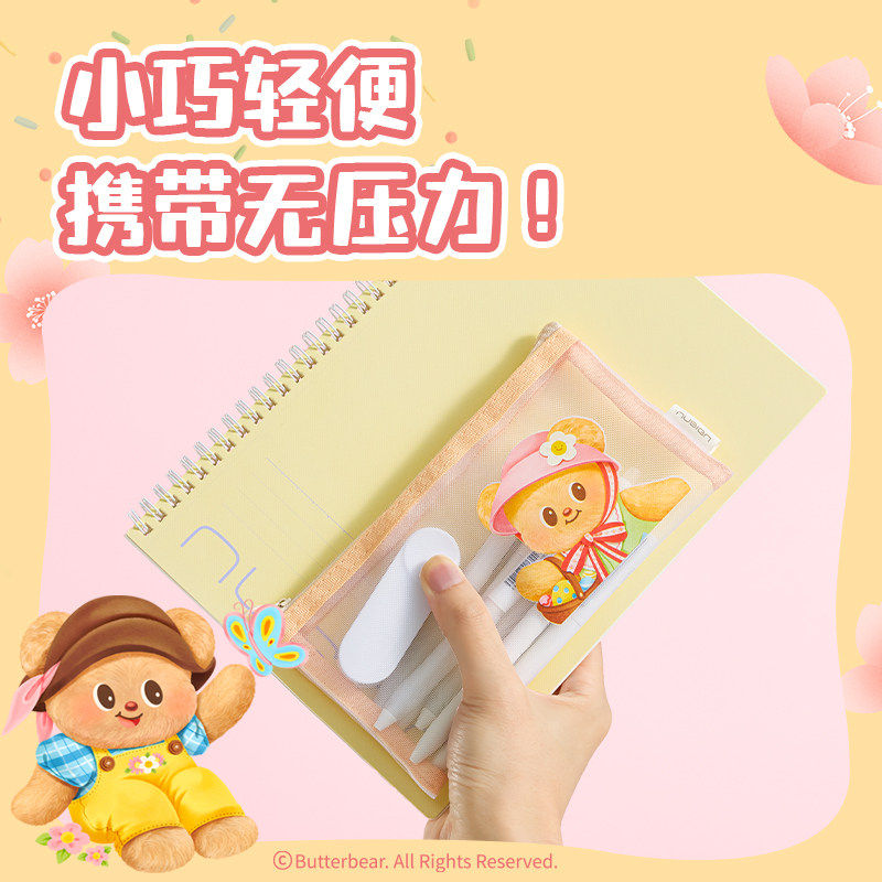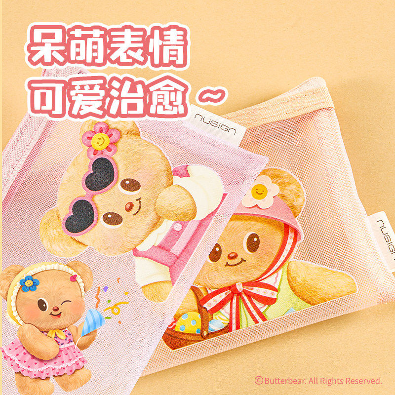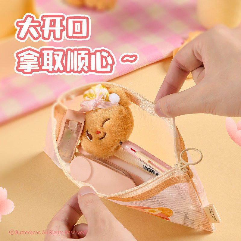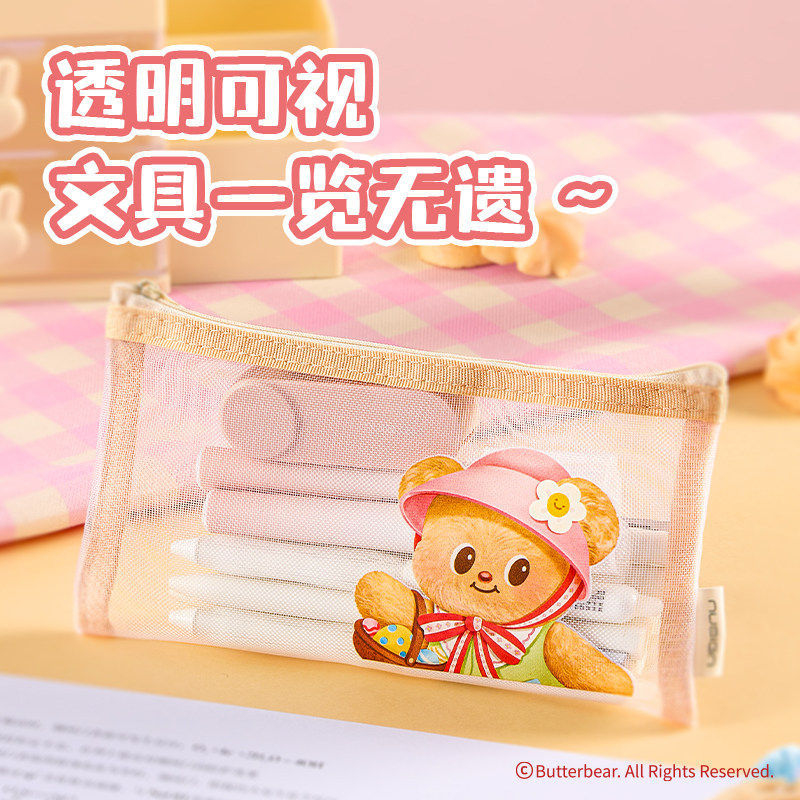 【黄油小熊系列】得力纽赛联名款网纱铅笔袋可爱高颜值ins风小学生文具女孩眉笔化妆收纳袋考试拉链文具袋