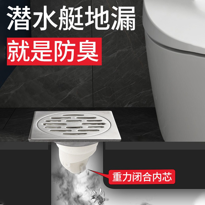 潜水艇地漏套餐 304不锈钢卫生间淋浴洗衣机大排量地漏防臭内芯盖