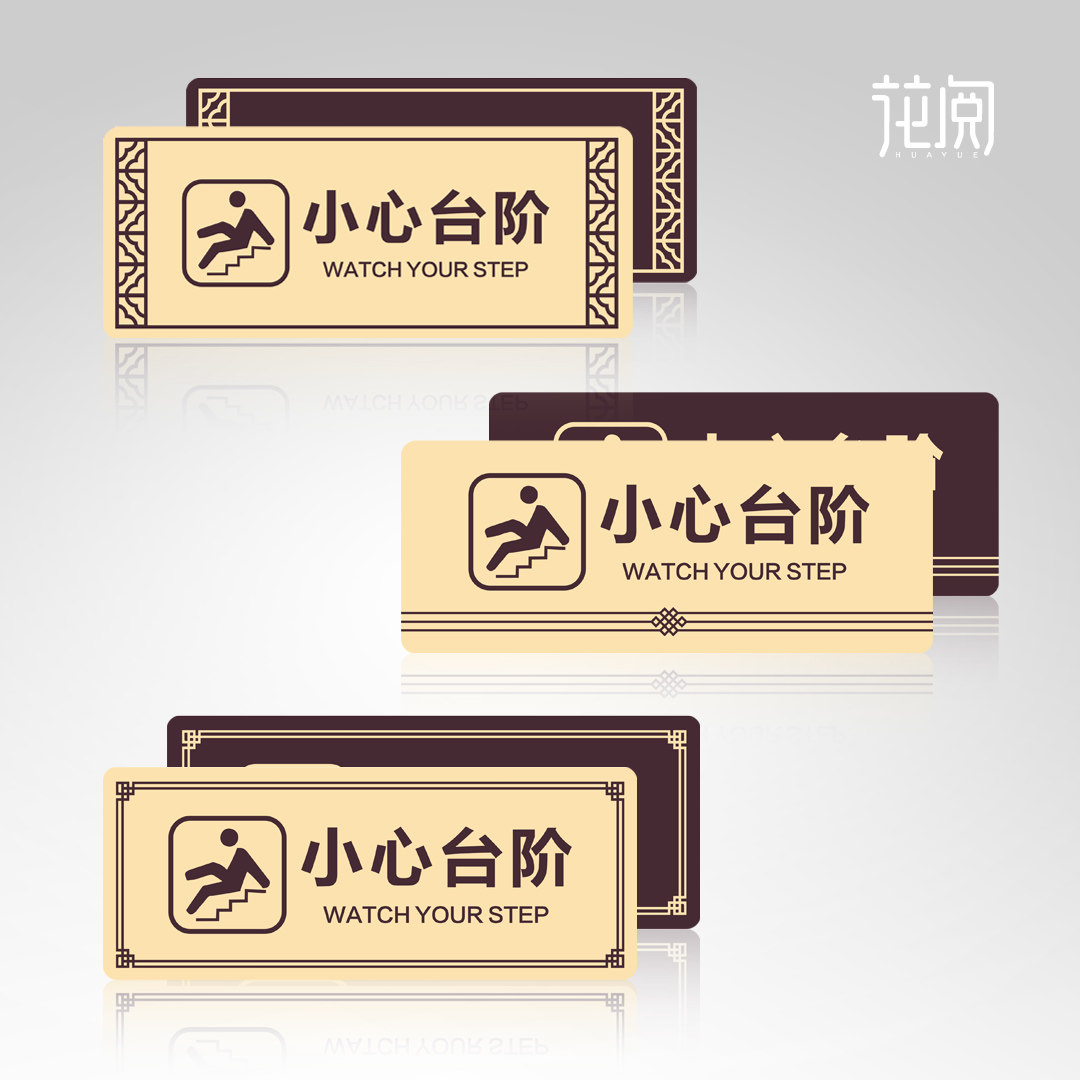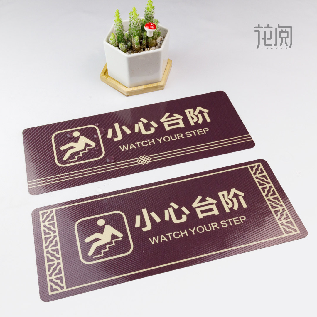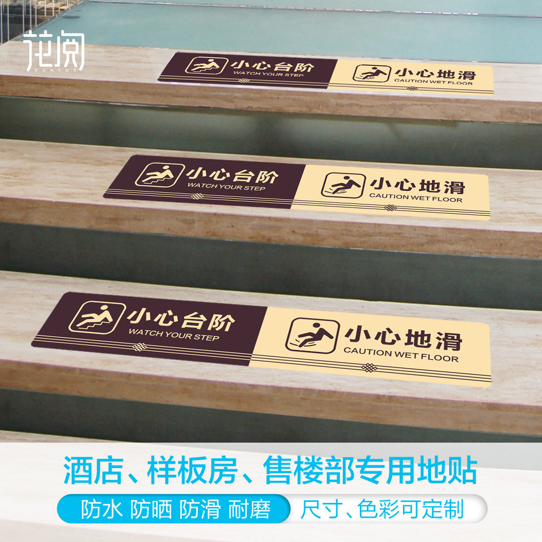 小心台阶小心地滑地贴提示牌商场超市酒店样板房售楼部中式小心台阶提示牌楼梯安全温馨提示标语斜纹地贴定制