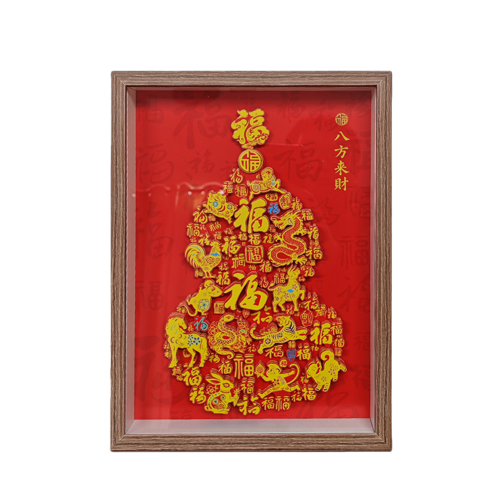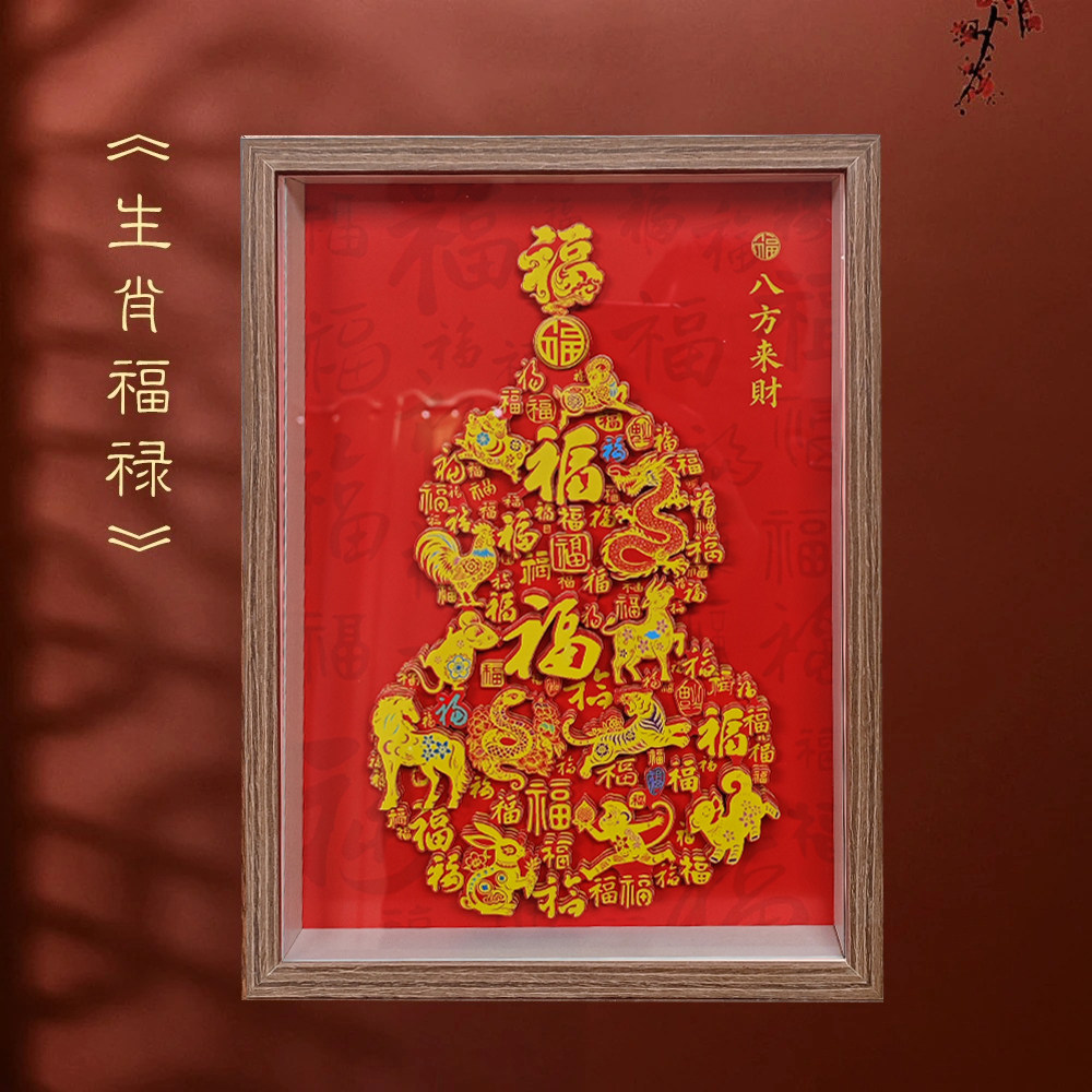 福禄寿纸雕葫芦剪纸文创相框摆件客厅装饰挂件中国风立体画