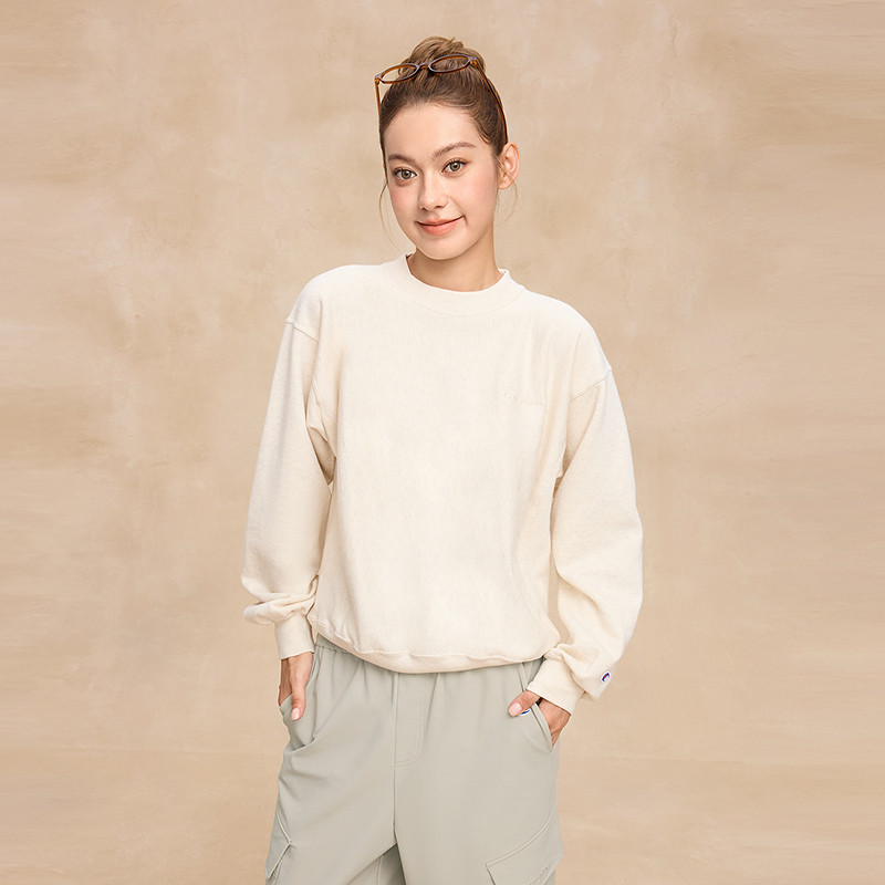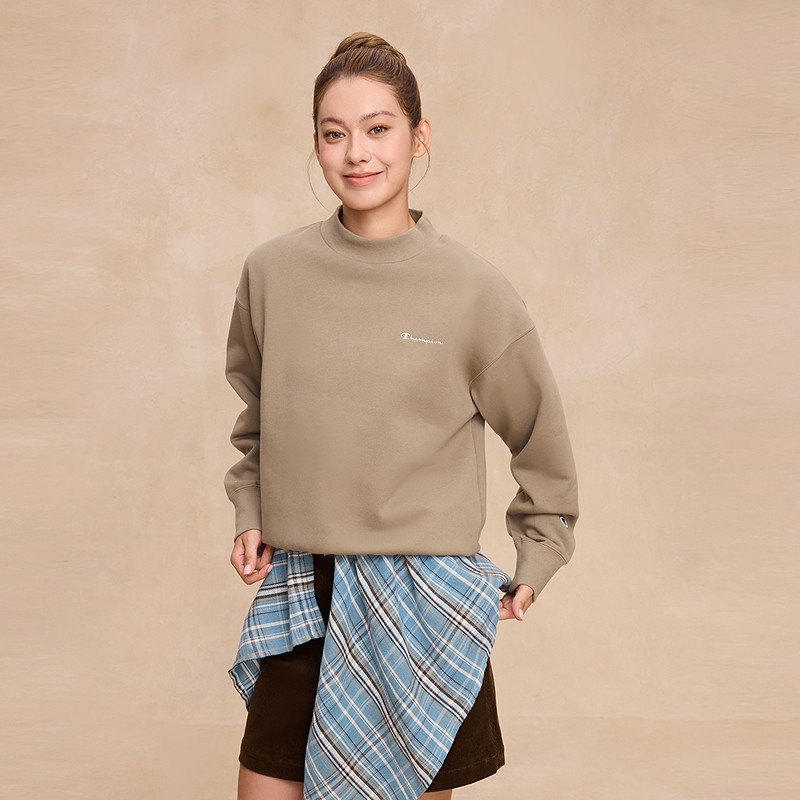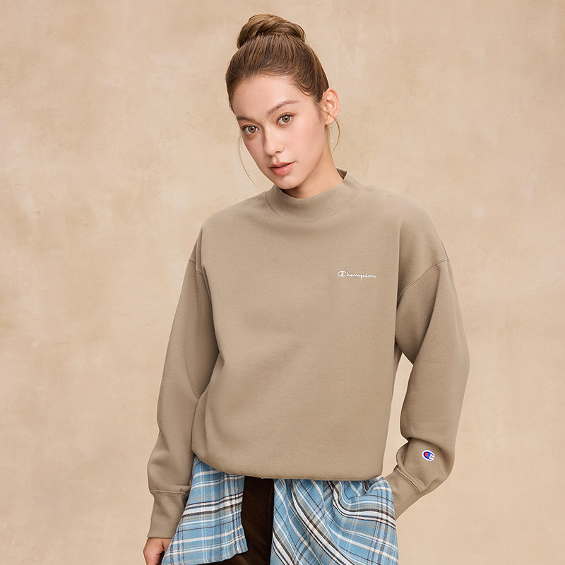 Champion冠军半高领卫衣女2025秋季新款加绒简约款卫衣美式复古风