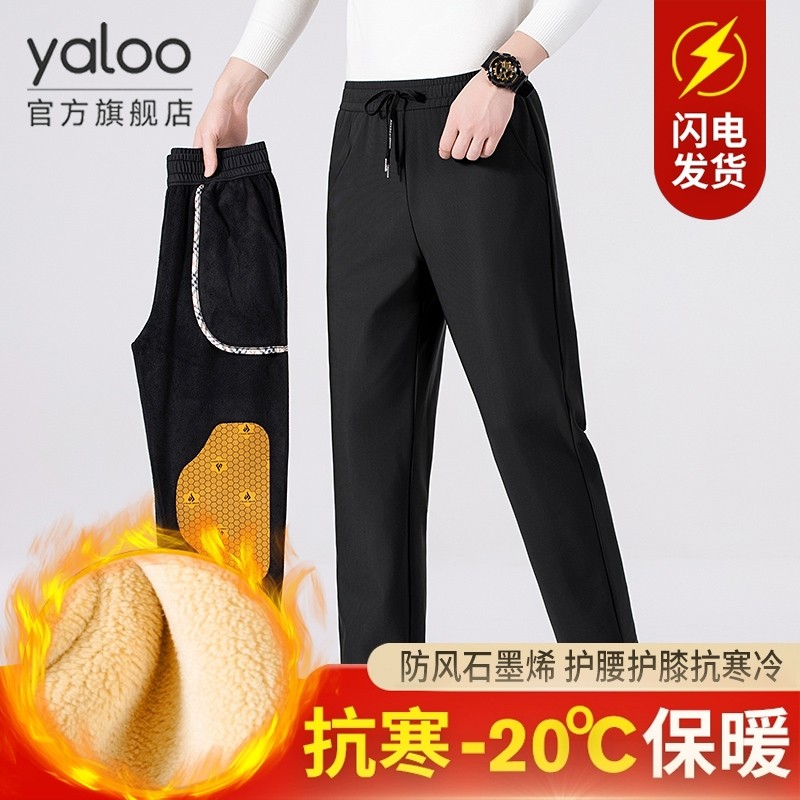 雅鹿男士保暖裤加绒加厚男款外穿冬季防风羽绒棉棉裤石墨烯羊毛