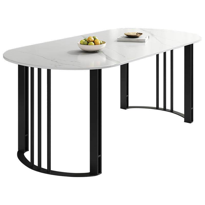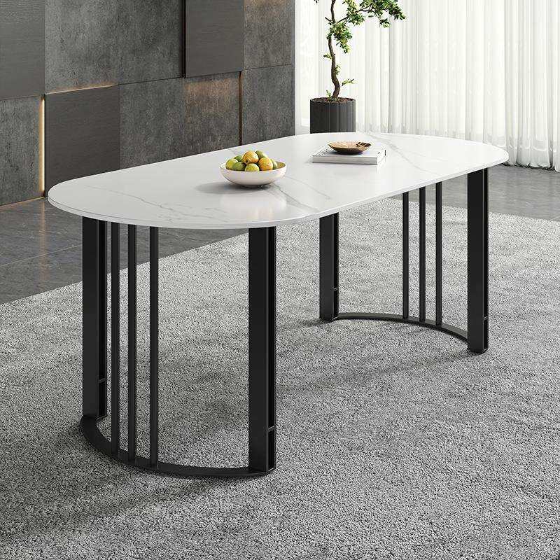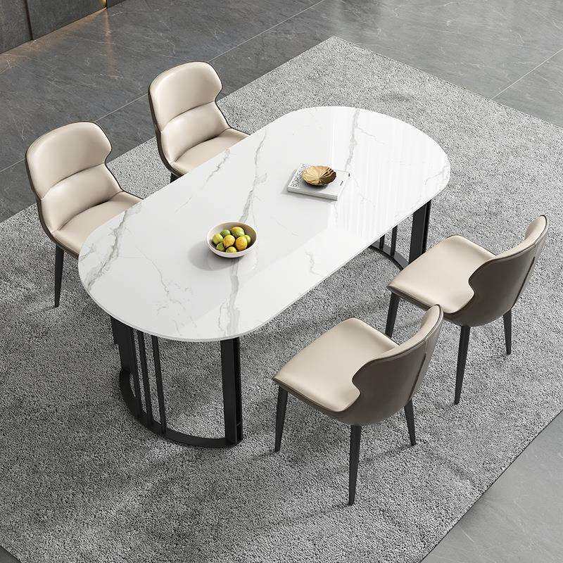 餐厅家用客厅岩板餐桌椅组合小户型现代简约吃饭桌白色椭圆长桌子
