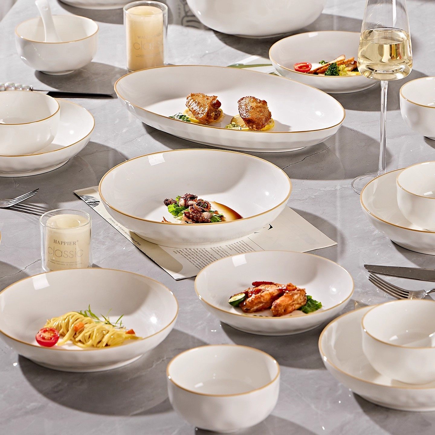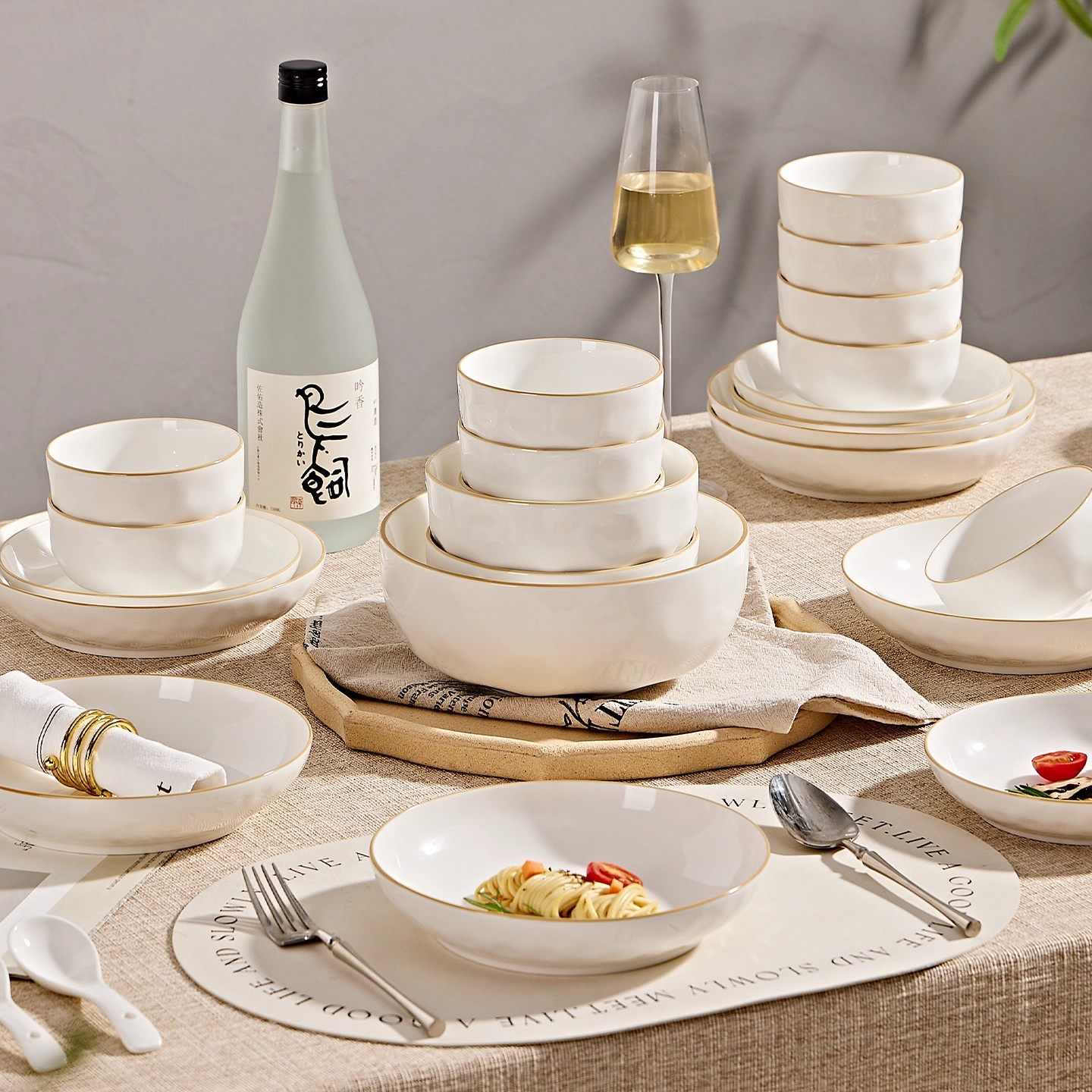 陶瓷家用盘碗5个菜盘1汤碗圆盘子大汤碗水果盘饭盘碗碟子可微波炉