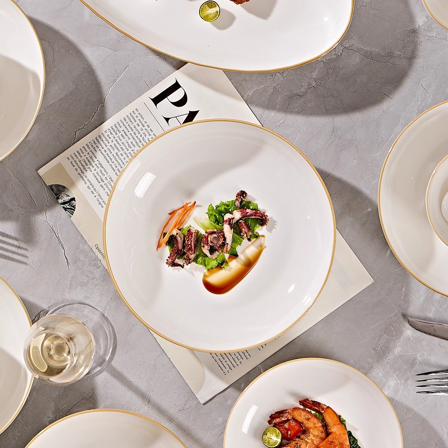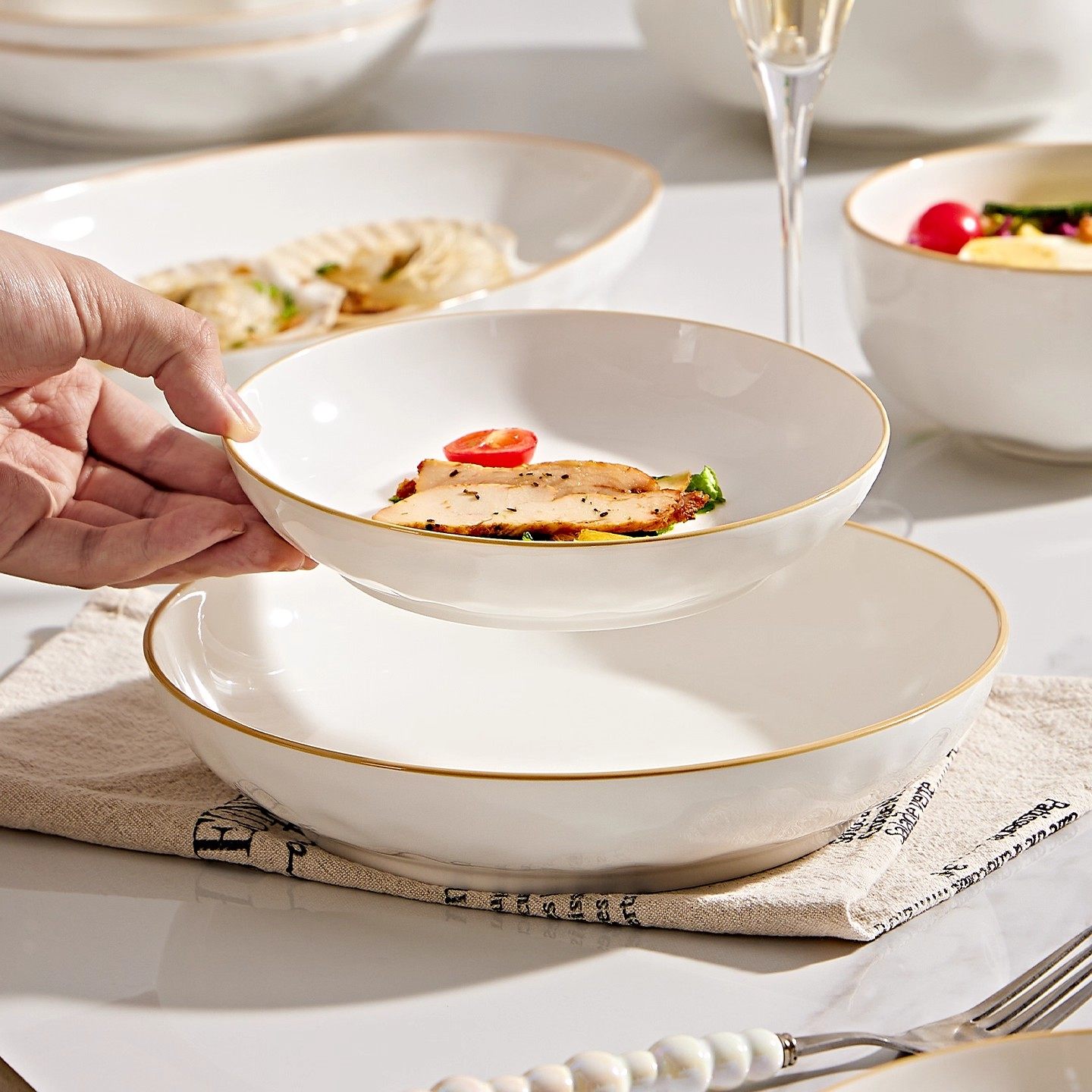 景德镇餐具深钵盘纯白无铅骨瓷饭碗新中式圆形RS炒菜深盘酒店家用