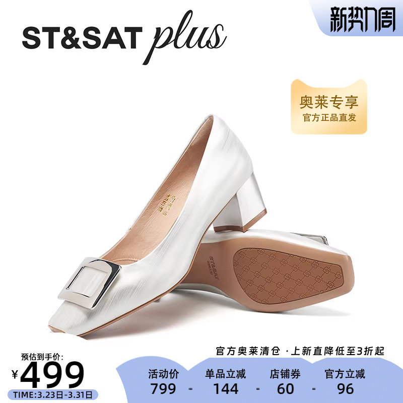 星期六时尚简约方头粗跟2026春款优雅金属扣浅口单鞋SSE1111219