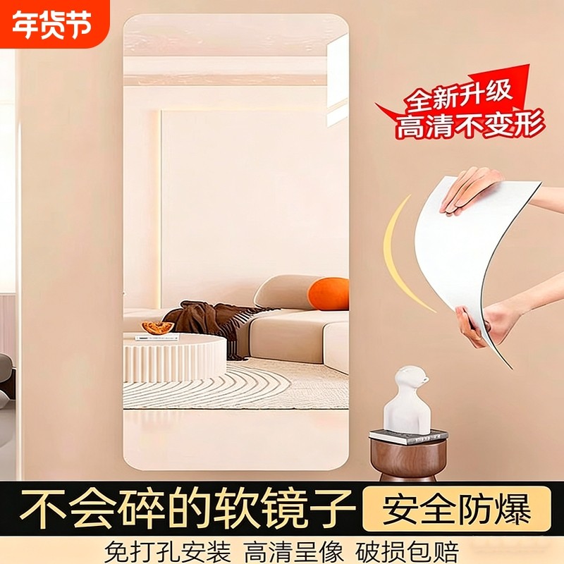 衣柜软镜子贴墙自粘穿衣镜内装隐形亚克力高清试衣镜子家用全身镜