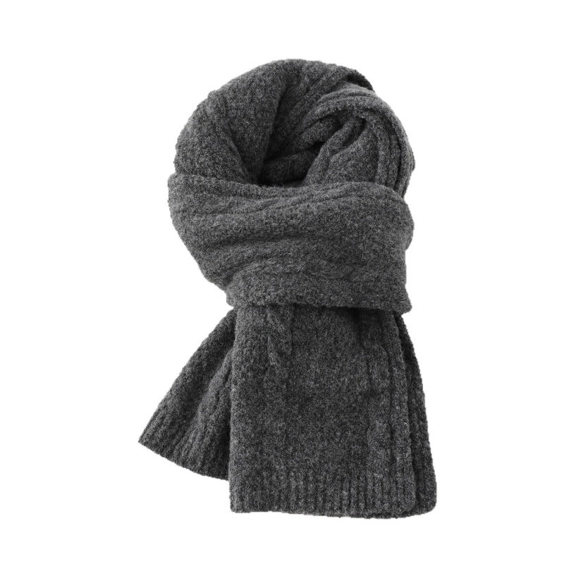 韩版百搭简约针织围巾女冬季加厚保暖纯色毛线高级感气质款围脖男