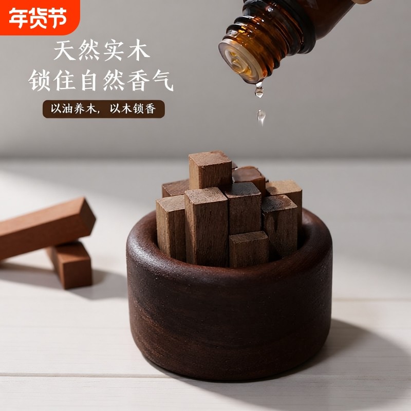 黑胡桃木车载扩香器无火香薰精油高级感摆件车载香氛随身扩香木