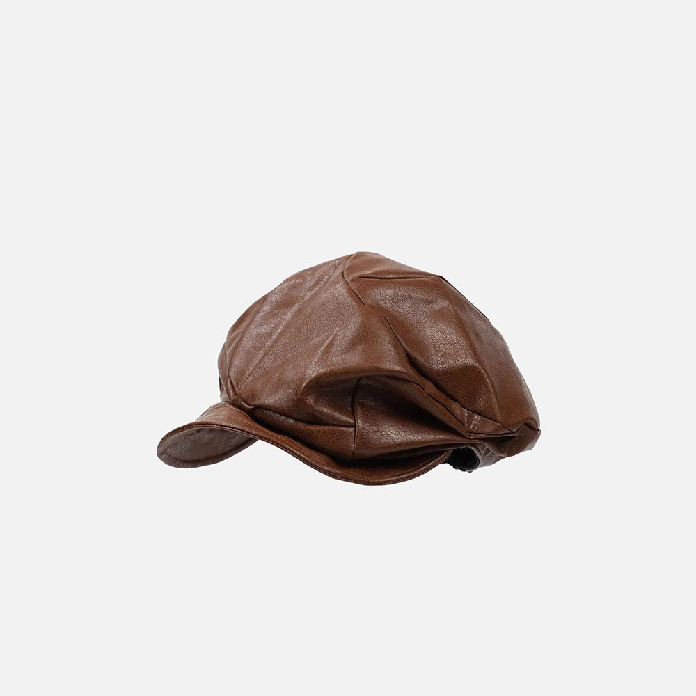 Classy key新加坡设计师联名款不规则褶皱PU贝雷帽百搭复古报童帽