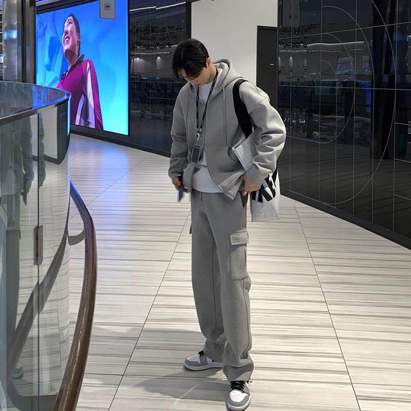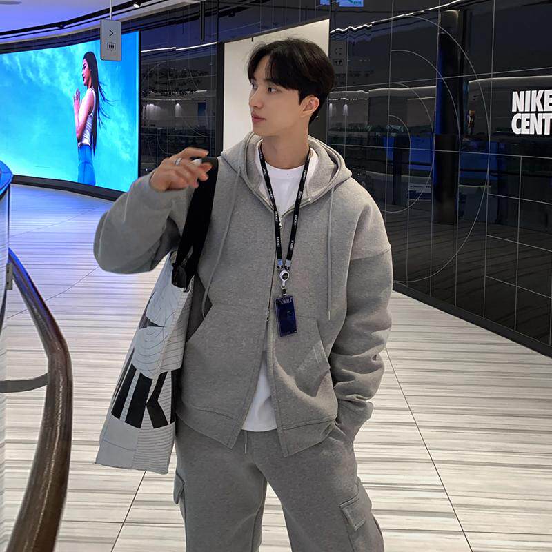 碧舍连帽卫衣男休闲运动开衫套装韩版宽松百搭小众通勤重磅外套潮