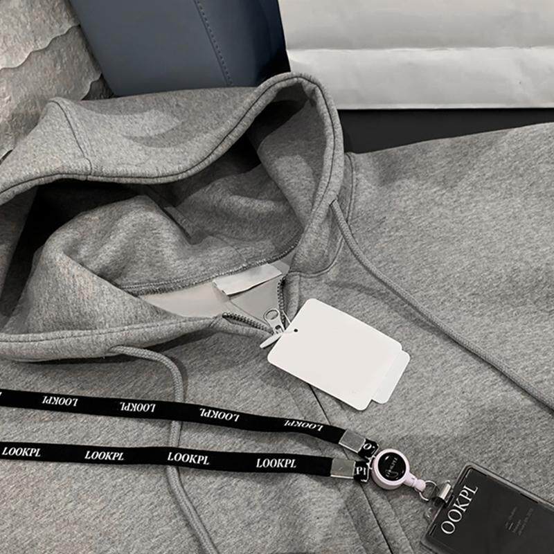 NEVERNEED美式cleanfit连帽卫衣男女boxy短款双拉链撞色开衫外套