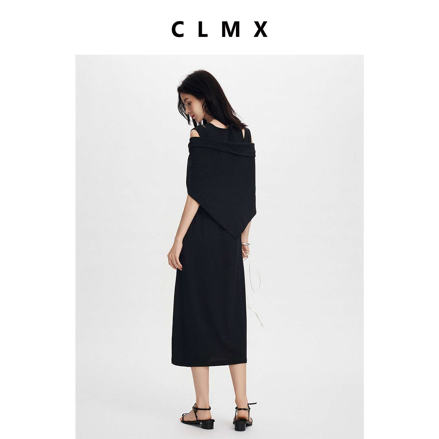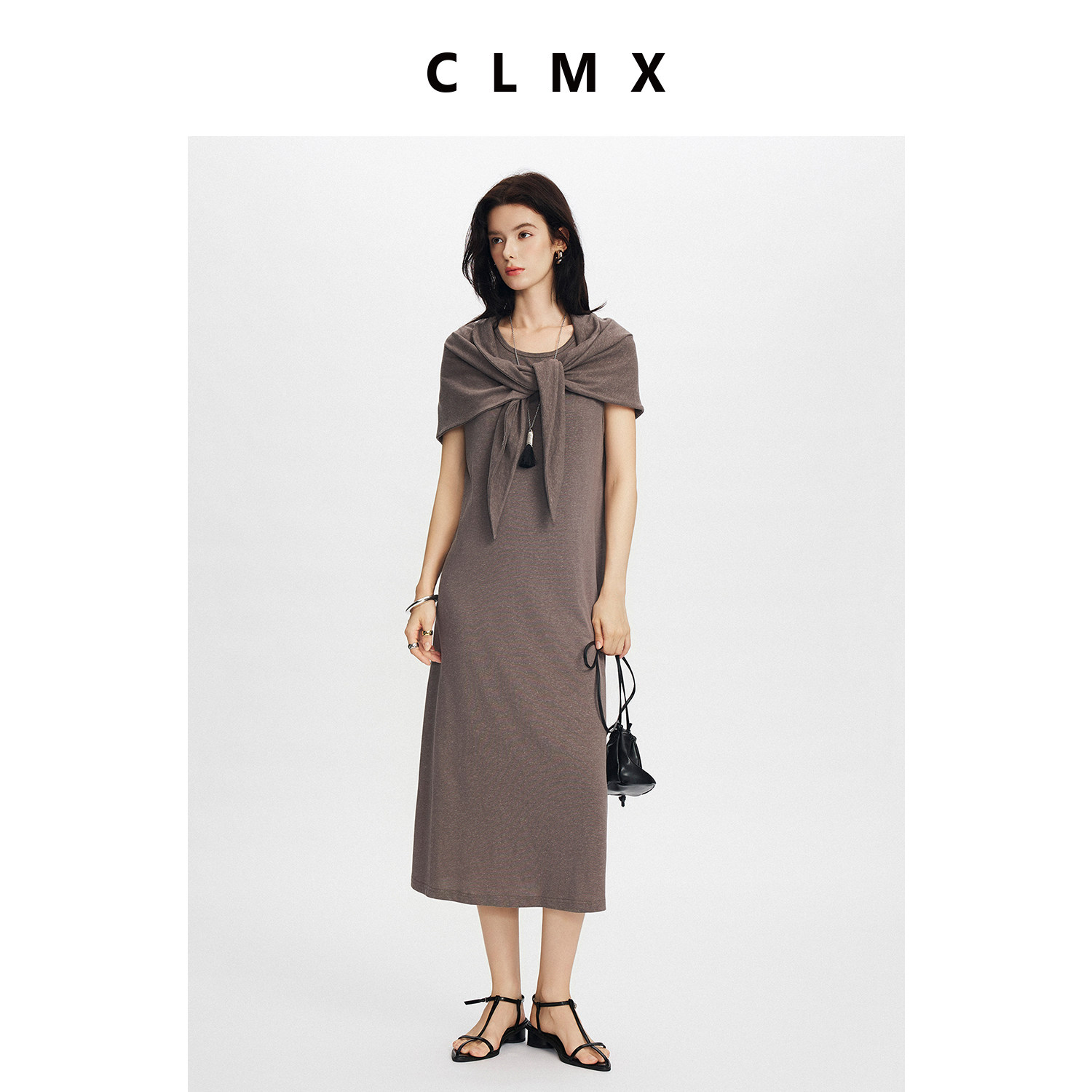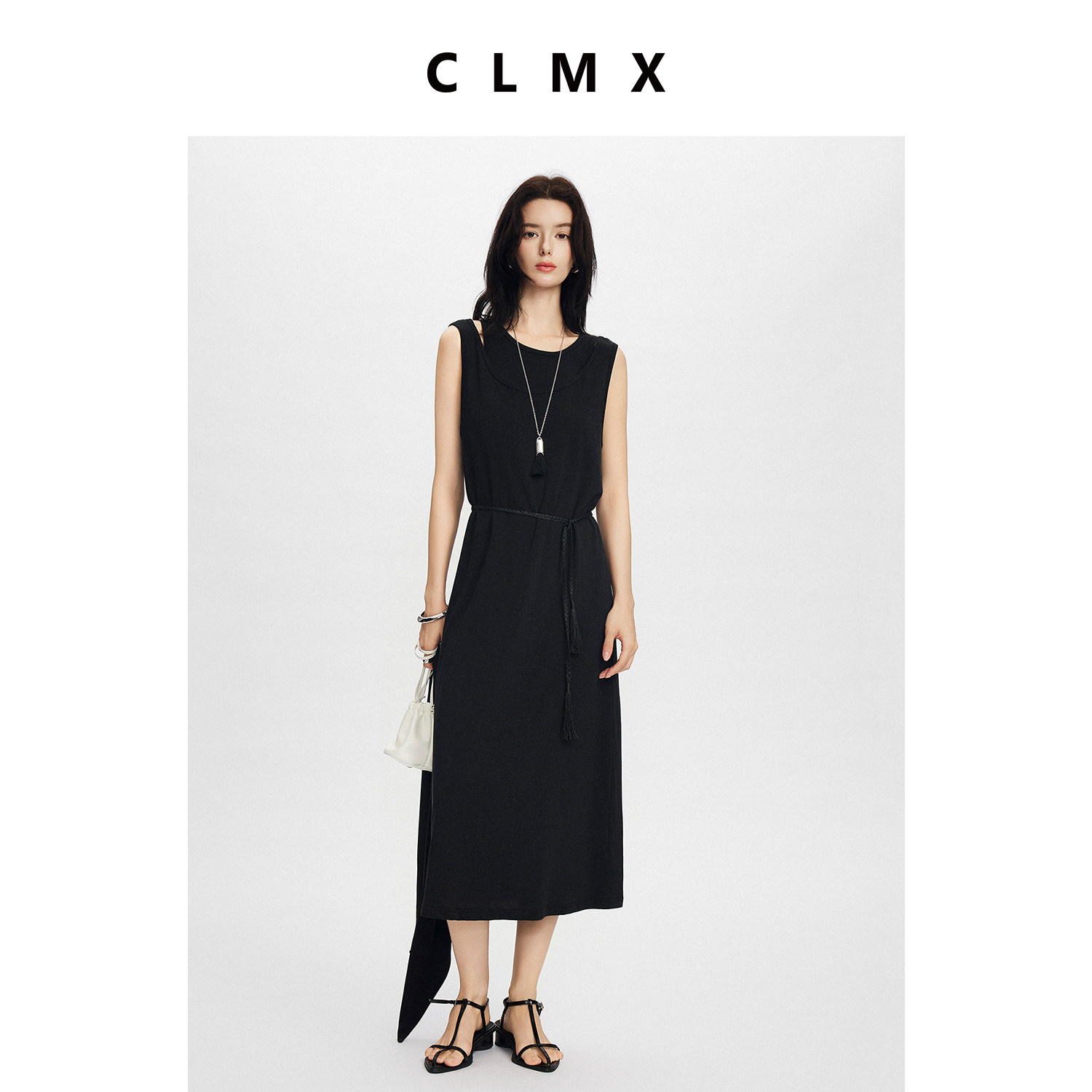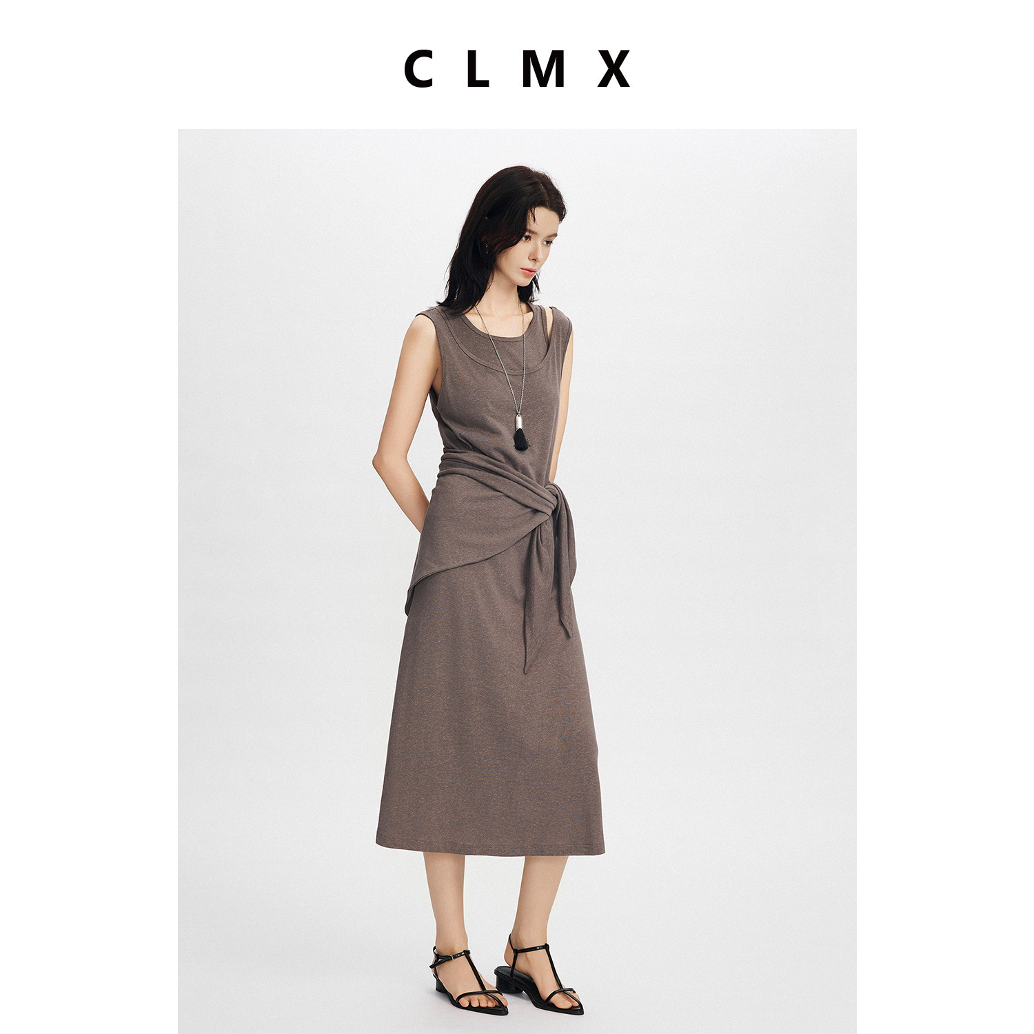 CLMX针织三件套混色莱赛尔棉亚麻混纺针织面料背心/连衣裙/三角巾