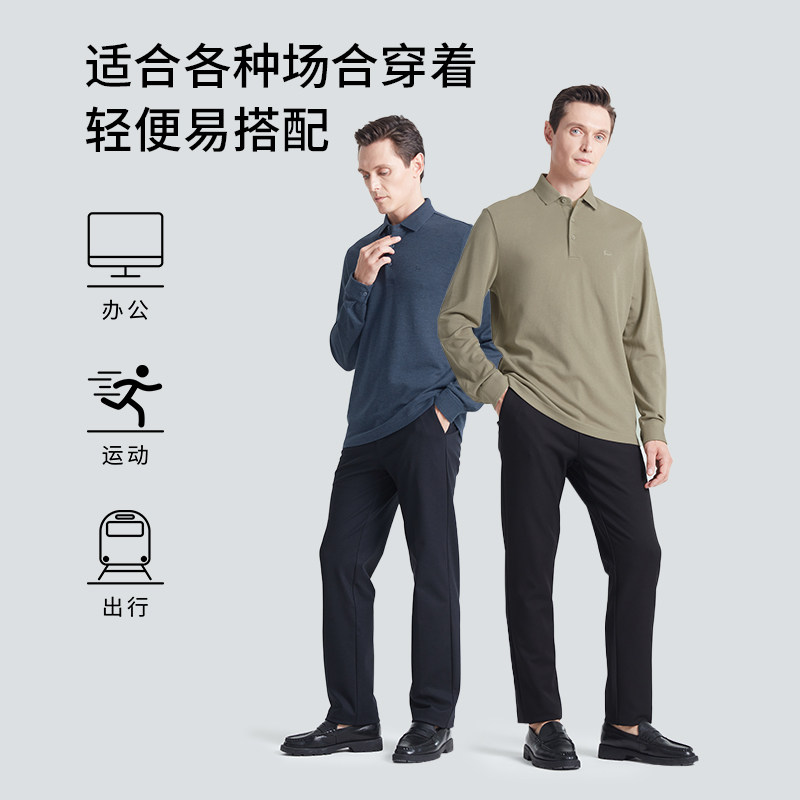 【透气珠地】暇步士男装2025秋季新款弹力休闲行政商务长袖POLO衫