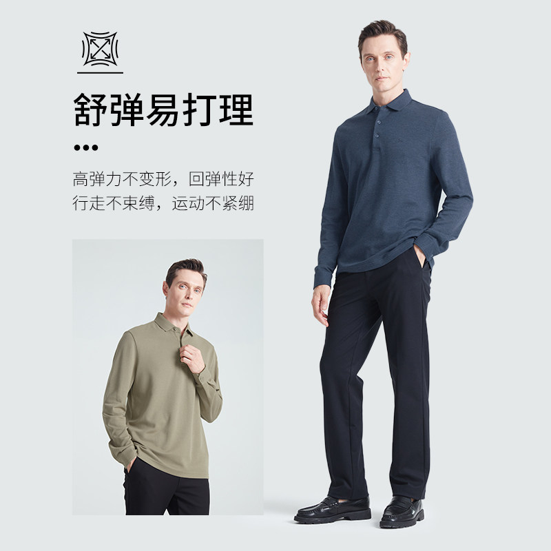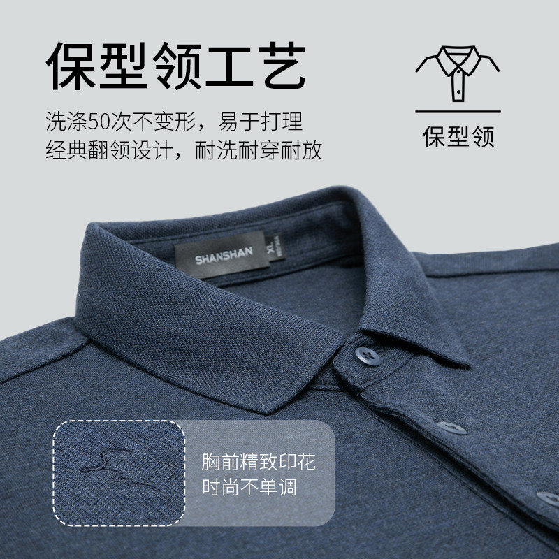 SHANSHAN杉杉长袖polo衫男款2025春季新款中年爸爸装翻领男士t恤