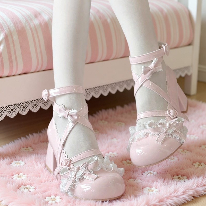 快团公主风lolita鞋星可爱doll感中跟蕾丝花边玛丽珍风铃语高跟