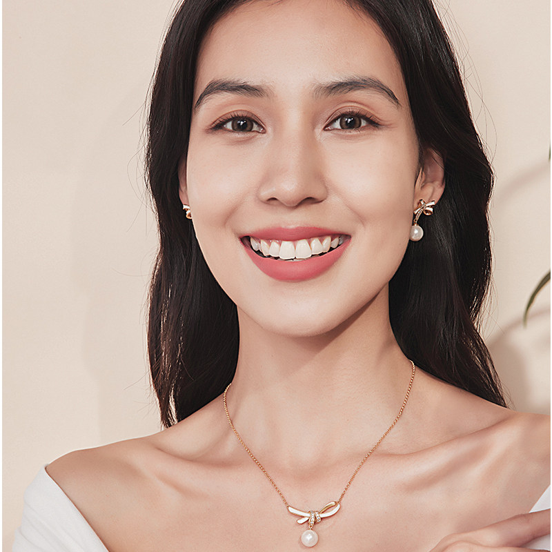 Fellala/翡拉拉「柔缎」原创轻奢蝴蝶结珍珠项链吊坠配饰新年礼物