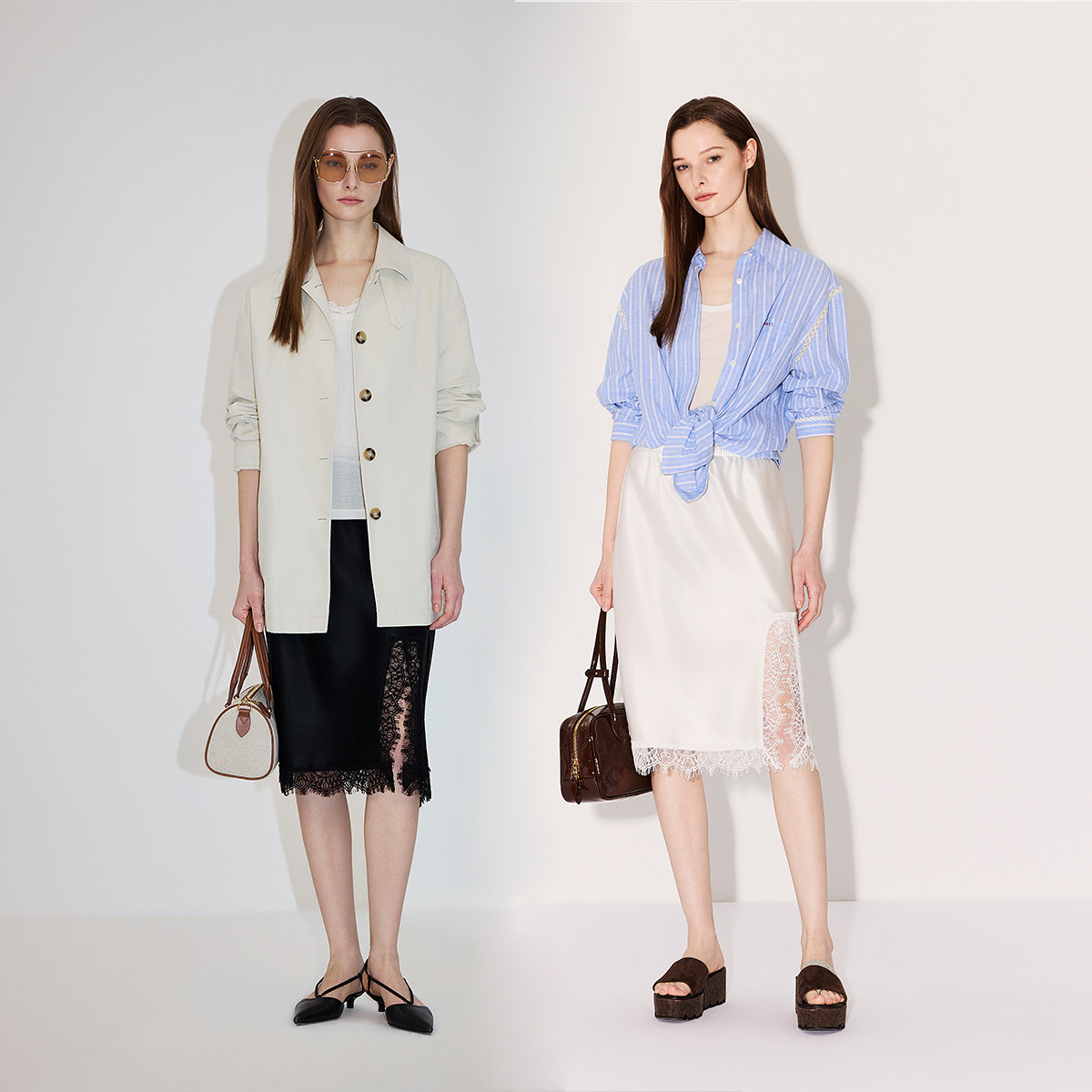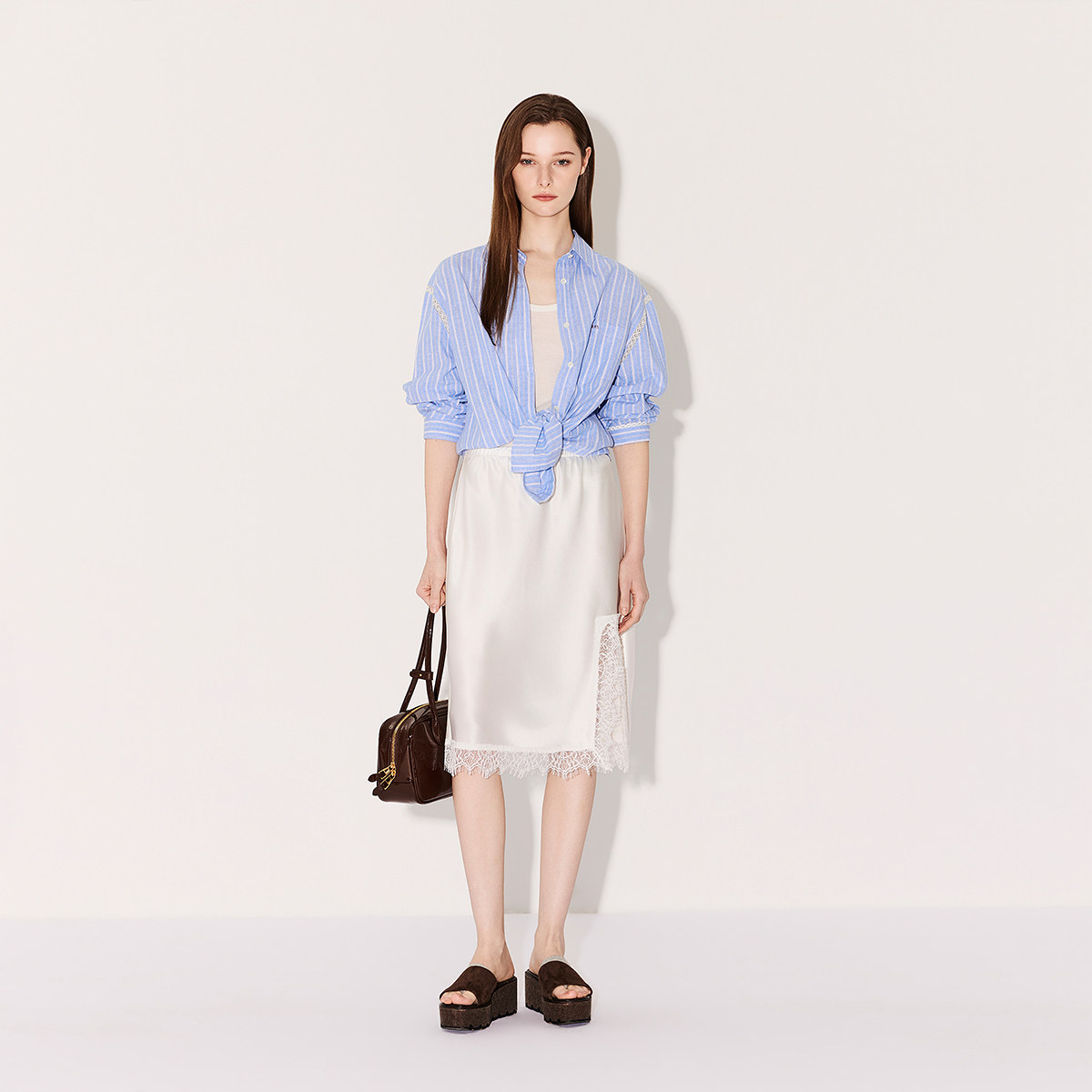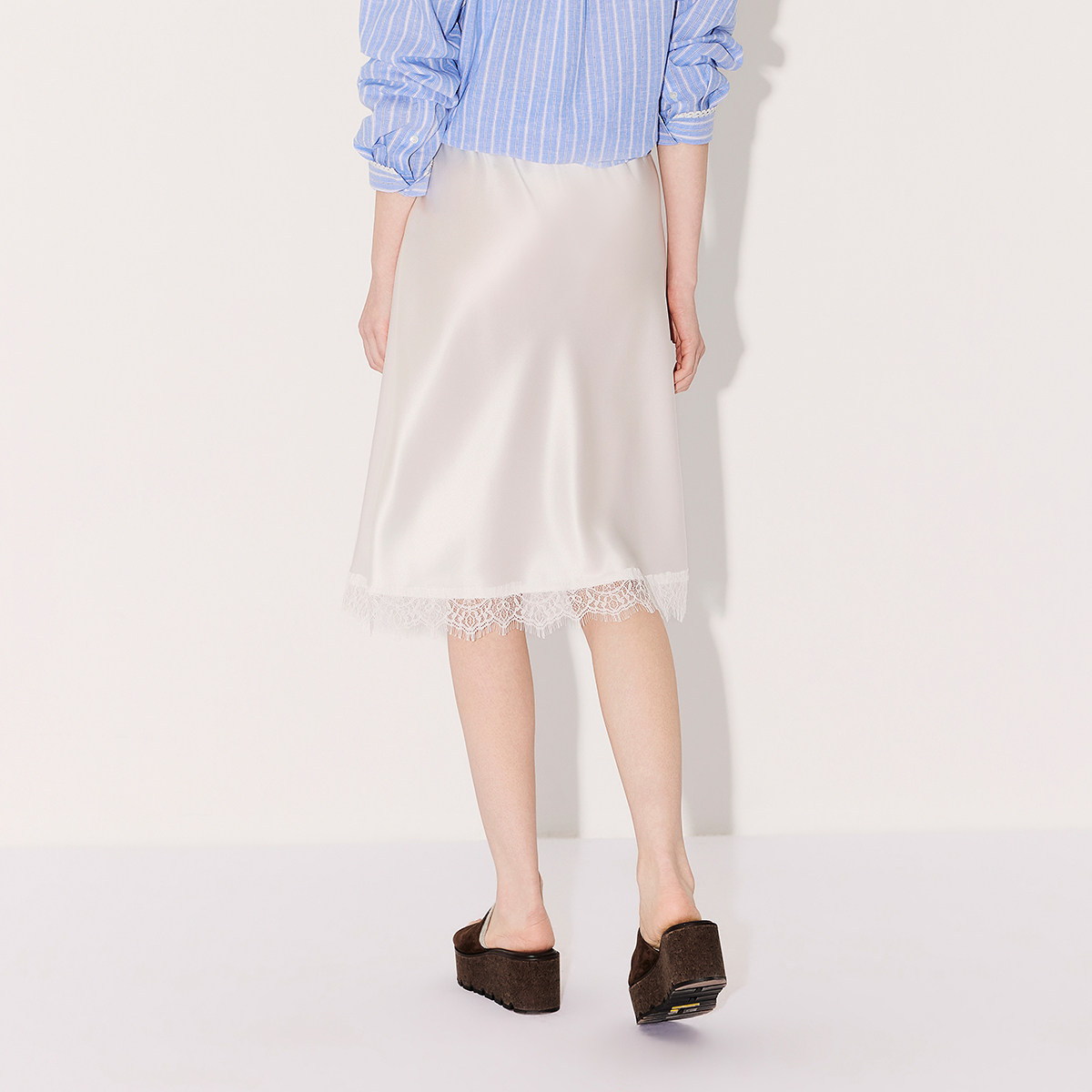 【新品】OCHIRLY欧时力 半身裙2026春夏醋酸缎蕾丝花边开衩直筒