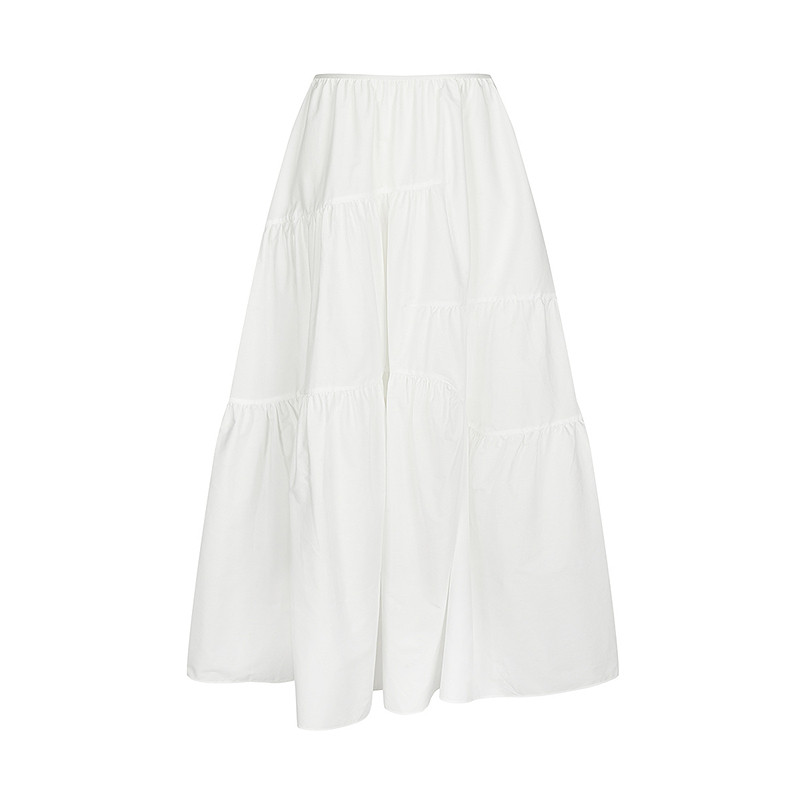她池松紧腰百褶裙2025秋装新款女装时尚简约中长款A字高腰半身裙