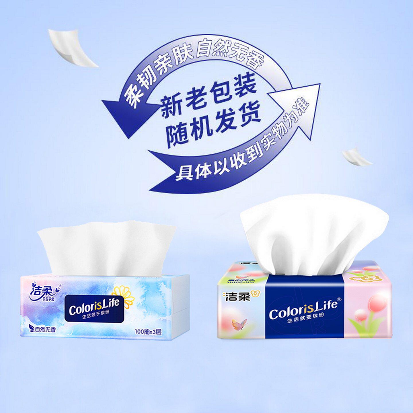 【实惠】洁柔抽纸缤纷系列3层100抽自然无香餐巾纸面巾纸抽家庭用