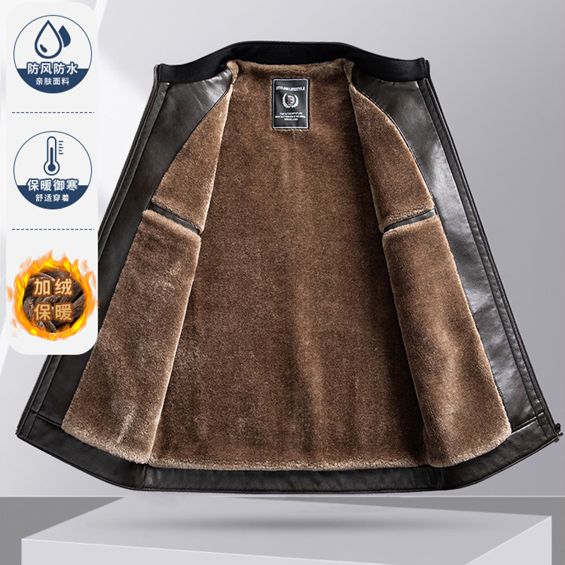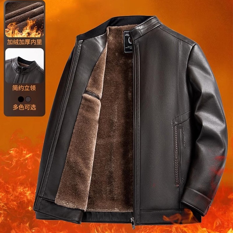 2025秋新款爸爸装皮衣冬季男士加绒加厚防寒外套中老年保暖皮夹克