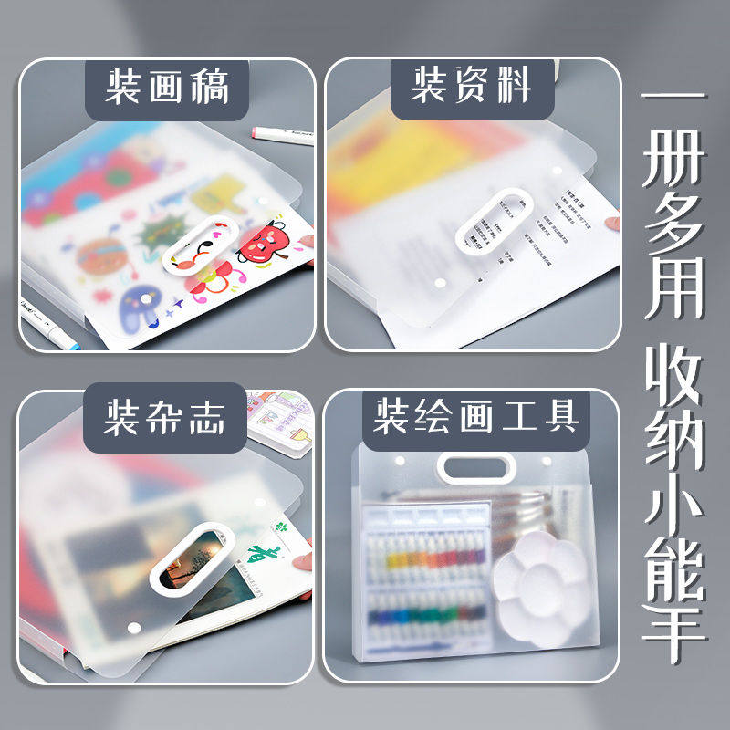 4k手提画册收纳册美术作品集素描绘画画稿纸画夹8K文件资料册a2画作收纳袋子a3透明海报油画袋儿童奖状收集册
