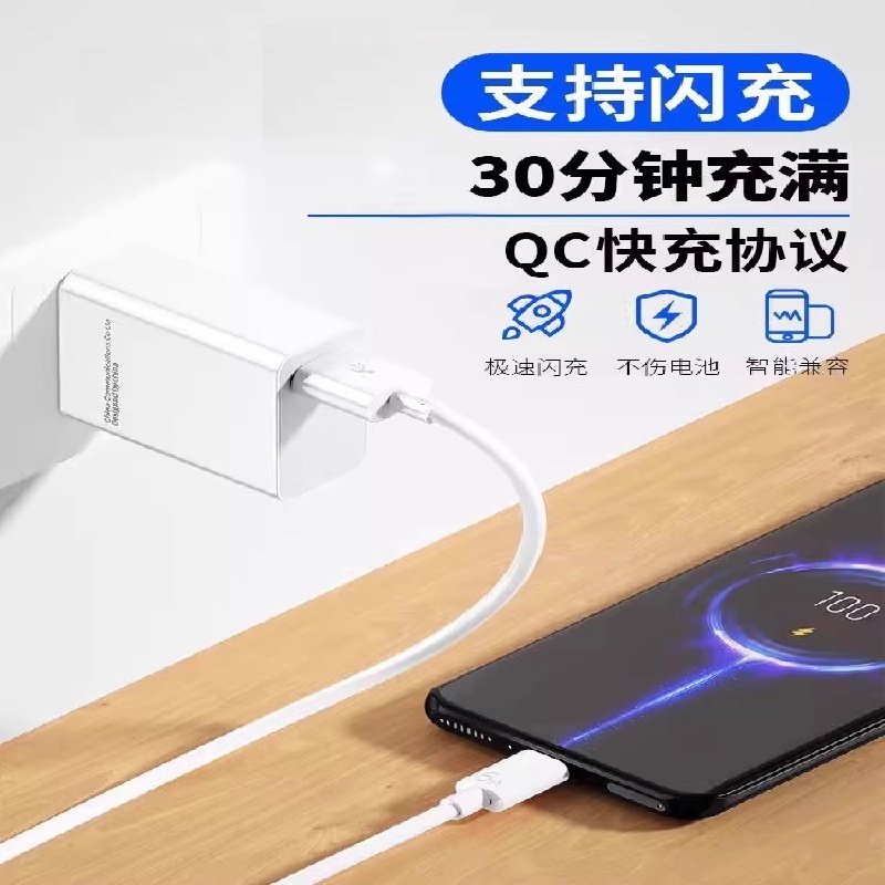 绿联充电器三合一数据线USB多功能充电头车载充电线快充套装适用苹果安卓手机耳机通用typec插头5v1a2a充电头