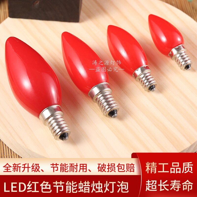 LED红色蜡烛灯泡小螺口佛龛供佛财神灯神台莲花灯e12E14节能灯笼