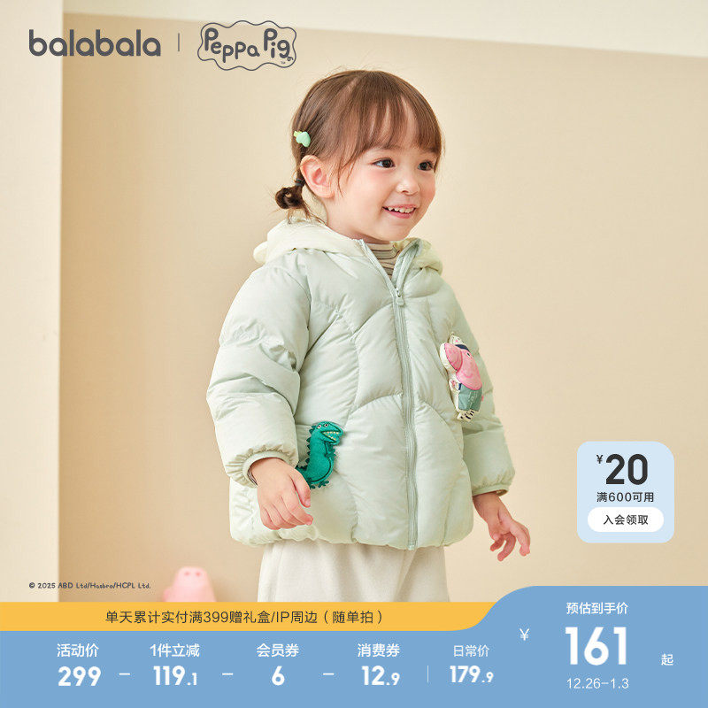 【小猪佩奇IP】巴拉巴拉儿童羽绒服连帽男女童冬装款上衣舒适保暖