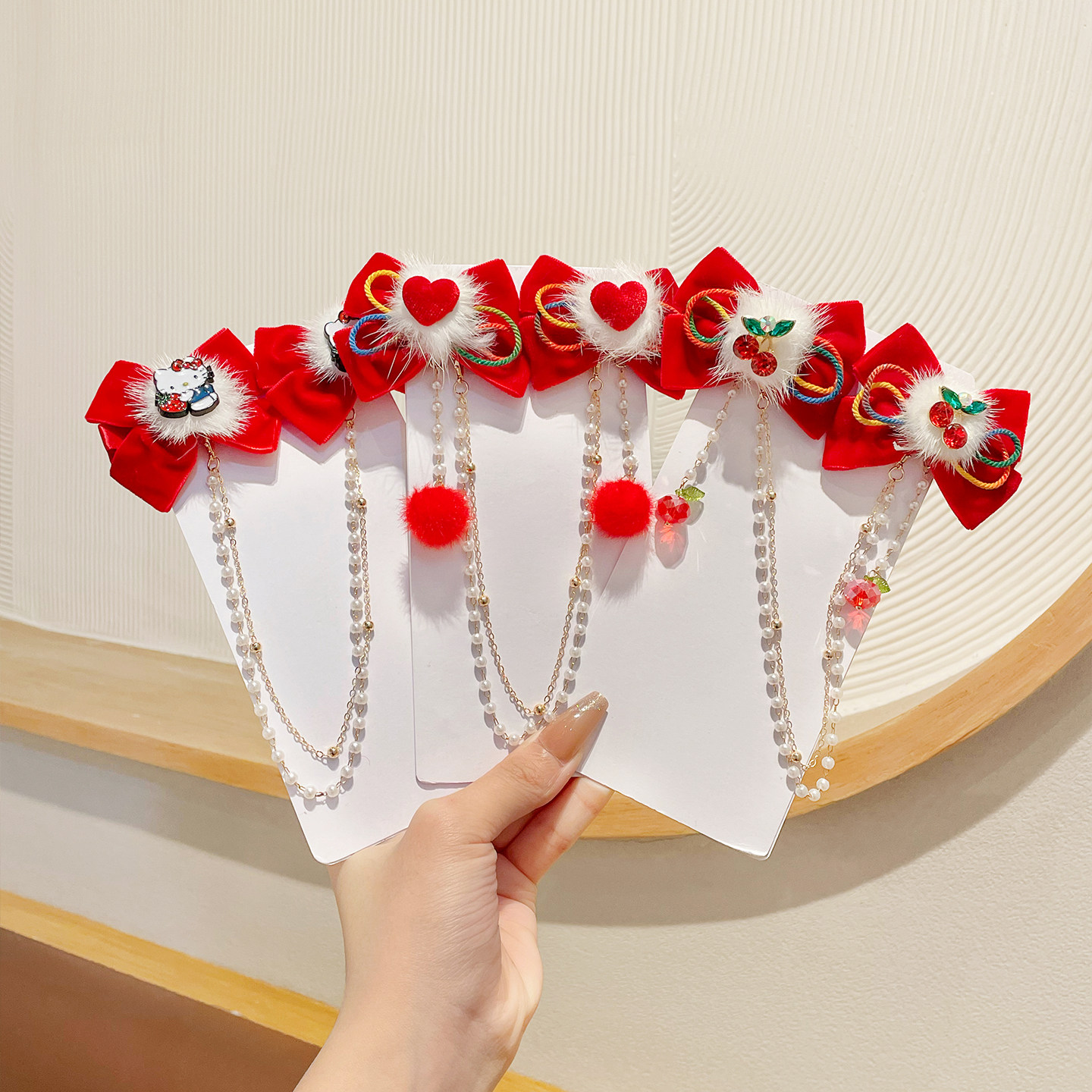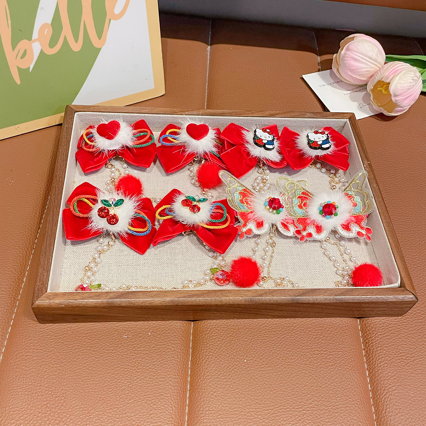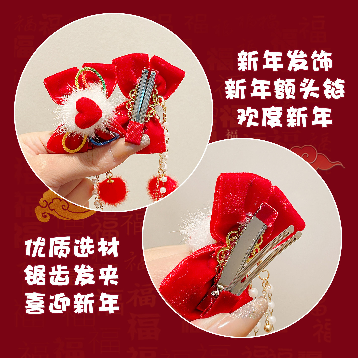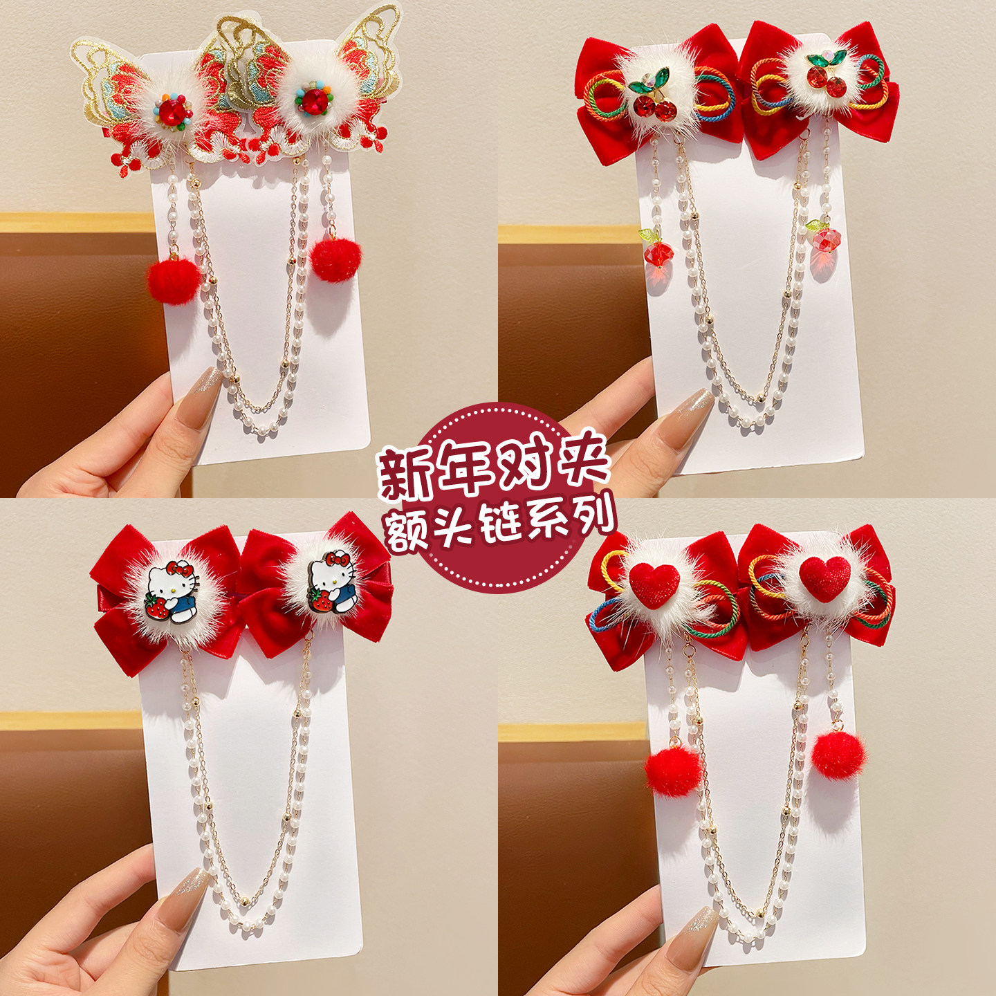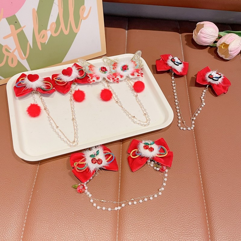 新年红色发夹儿童年头发饰中国风朵女童汉服步摇发卡子花过年风流