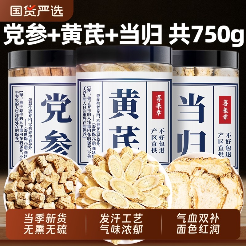 黄芪当归党参片中药材正品官方旗舰店甘肃茶补气养血三宝组合养生