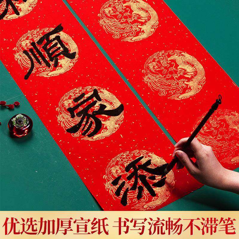 万年红长卷对联纸2025新年蛇年新款洒金大红纸书法作品专用过年春