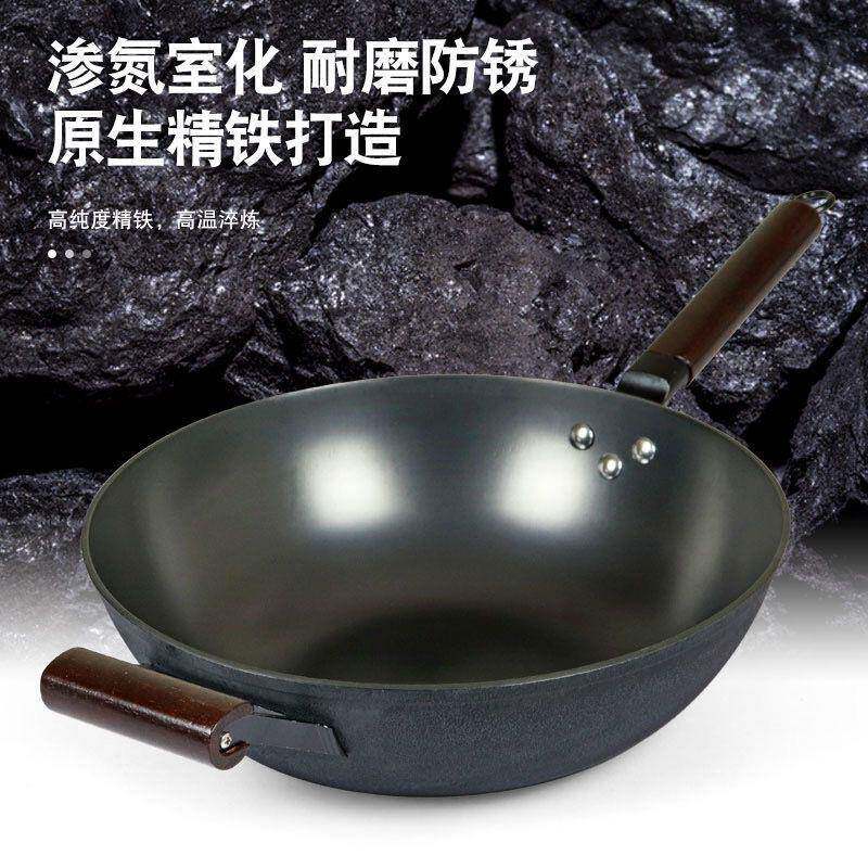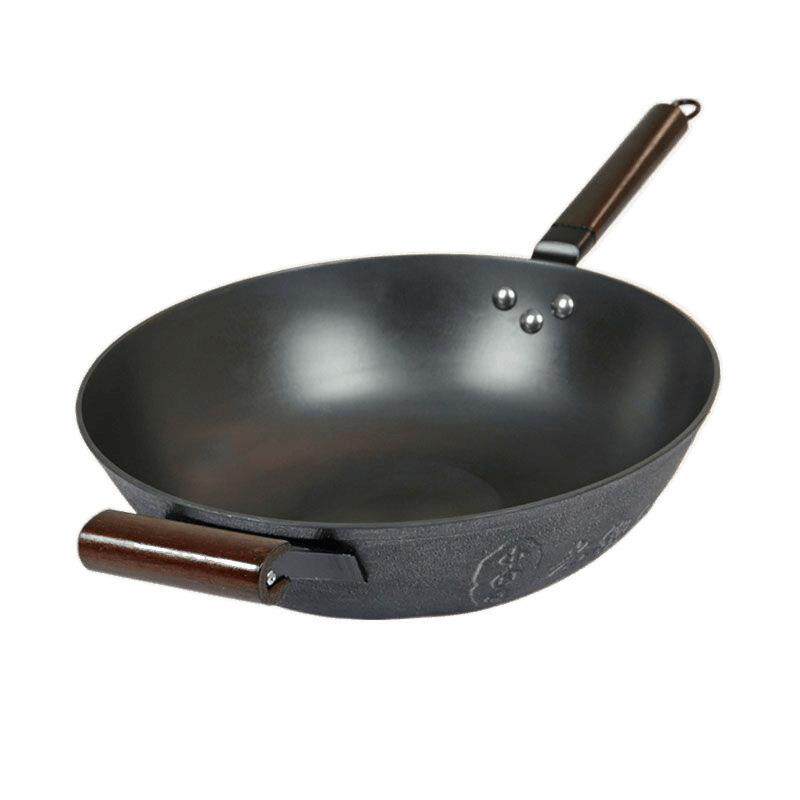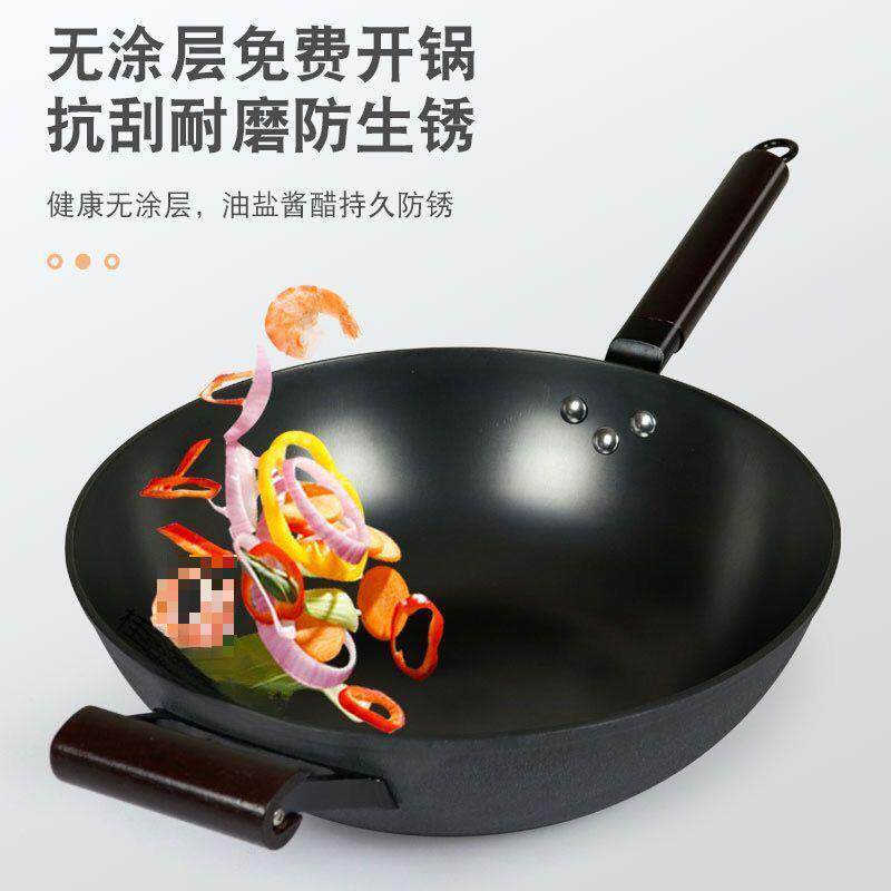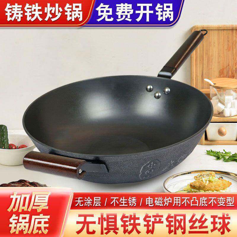 铸铁生铁炒锅电磁炉不变形不凸底爆炒加厚底家用无涂层平底老铁锅