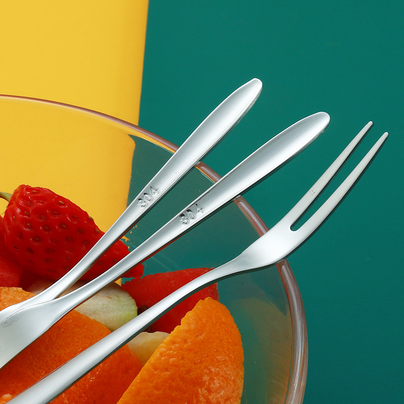304不锈钢水果叉子家用不锈钢加厚水果签果插甜品蛋糕叉子水果叉