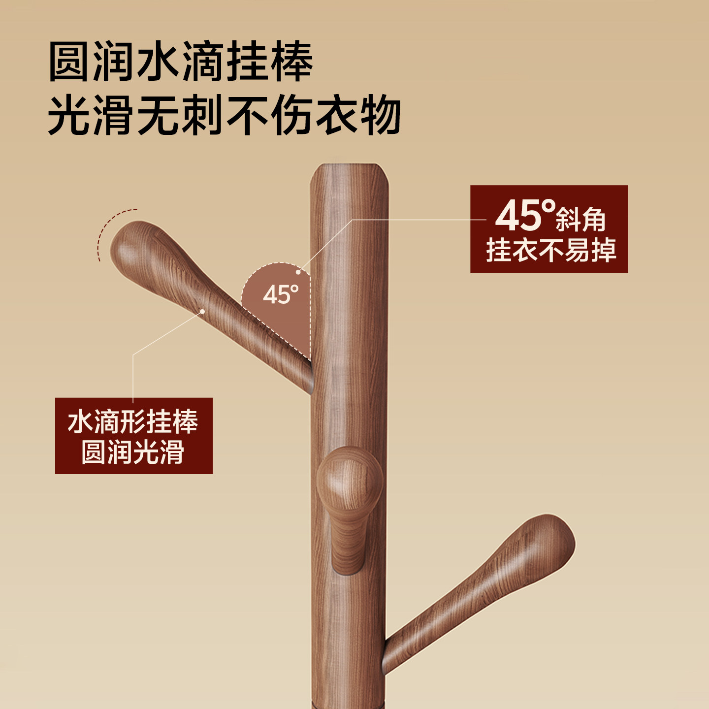 实木落地挂衣架卧室立式加粗网红衣帽架室内家用简易挂包置物架子