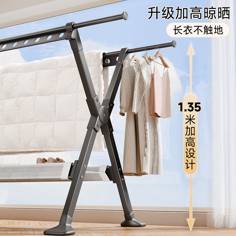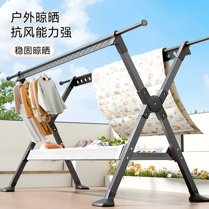 晾衣架落地家用阳台挂衣服折叠伸缩晒衣架室内外凉衣杆晒被子神器
