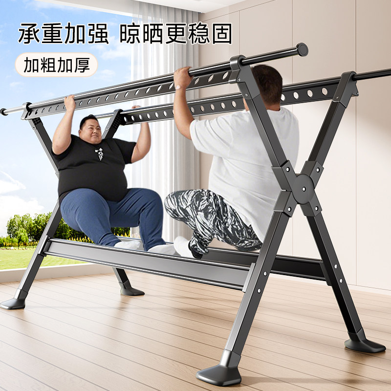 晾衣架落地折叠室内家用阳台卧室不锈钢室外凉伸缩杆式晒被子神器