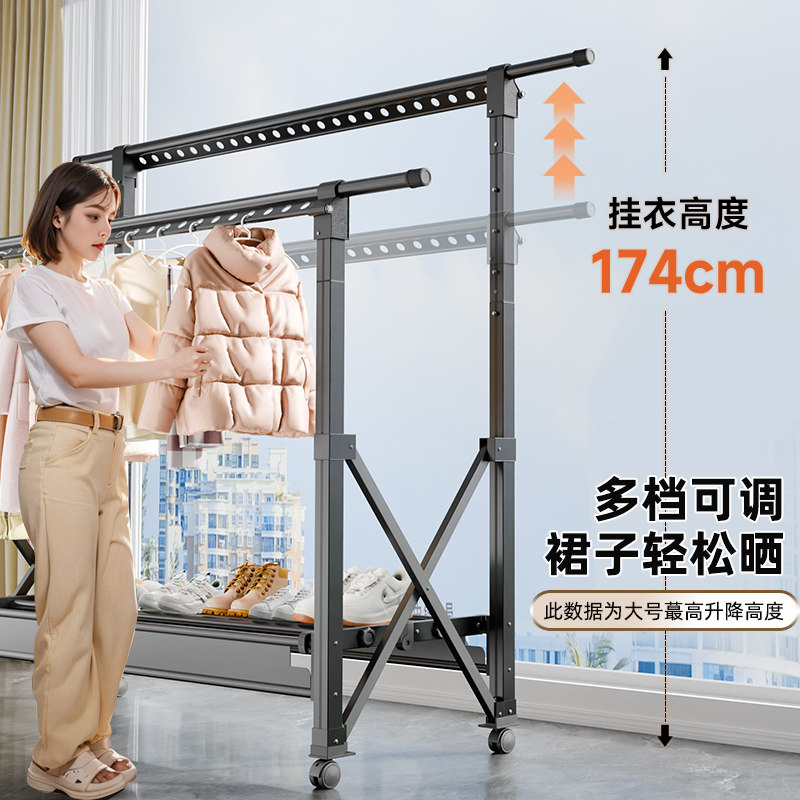 晾衣架落地折叠室内家用阳台室外卧室晒被子神器升降晒衣架凉衣杆