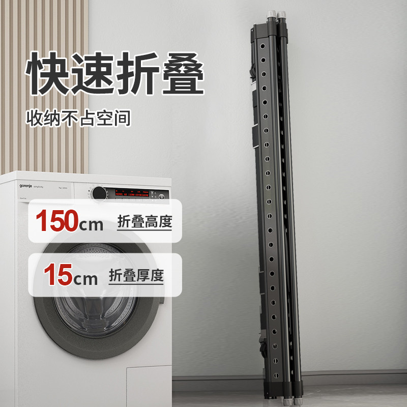 隐形折叠晾衣架免打孔晾衣杆落地伸缩不占地吸盘阳台侧面晾衣神器